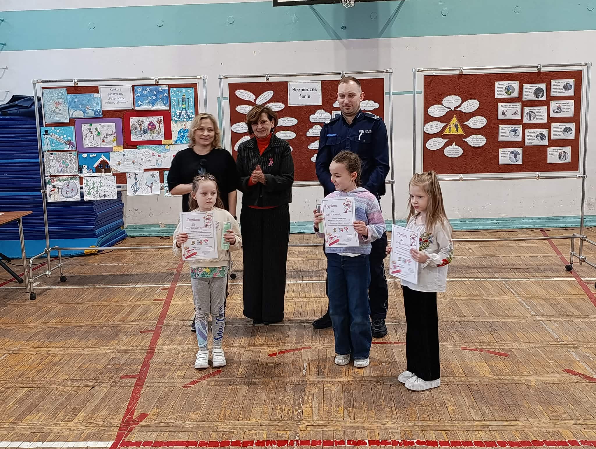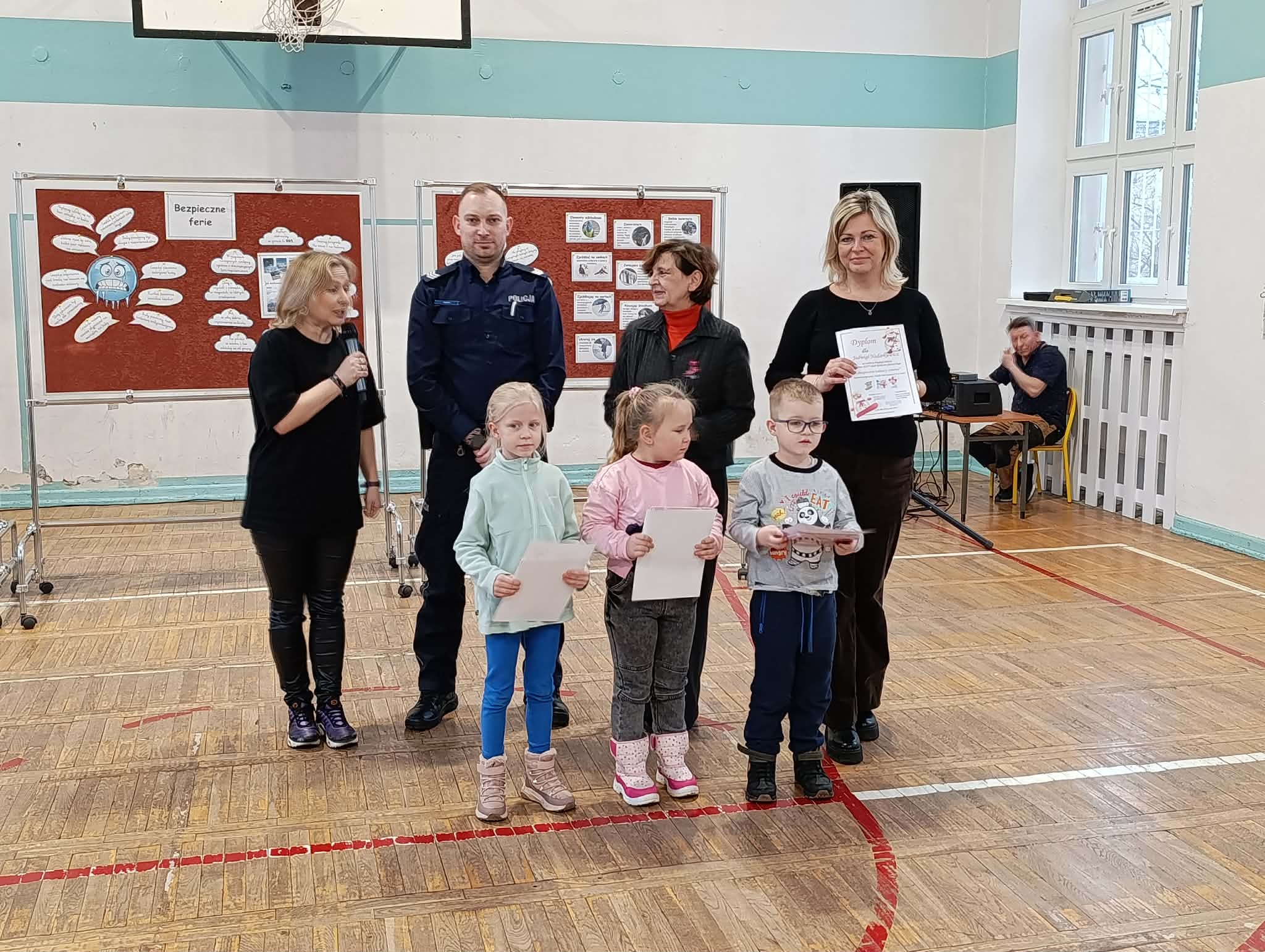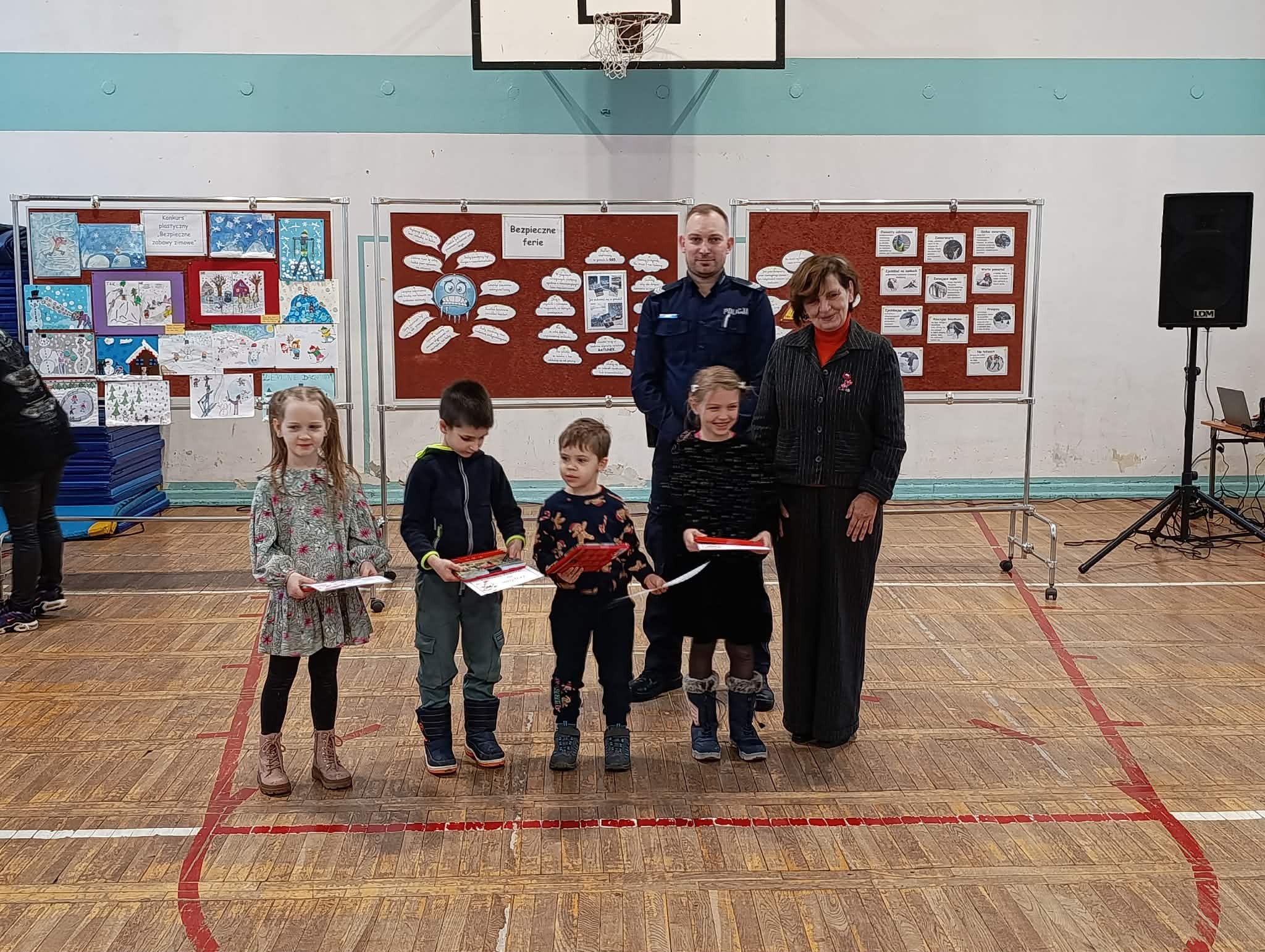 Jak co roku w ostatni piątek przed feriami odbyła się 24 edycja imprezy "Bezpieczne ferie". Jest to impreza dla klas 1-3 i przedszkolaków z zaprzyjaźnionych przedszkoli PM 83, PM 224, PM 107, PM 138. Dzieci utrwaliły wiadomości o bezpieczeństwie podczas zimowych zabaw na powietrzu. Oglądały przedstawienie "Zimowe harce" w wykonaniu klasy 2b i 3b. Podczas imprezy zostały wręczone nagrody za prace w konkursie plastycznym "Bezpieczne zabawy zimowe". Nagrody wręczył pan dzielnicowy Dawid Schab. Wszystkim uczniom i przedszkolakom życzymy: BEZPIECZNYCH I UDANYCH FERII !!! :)