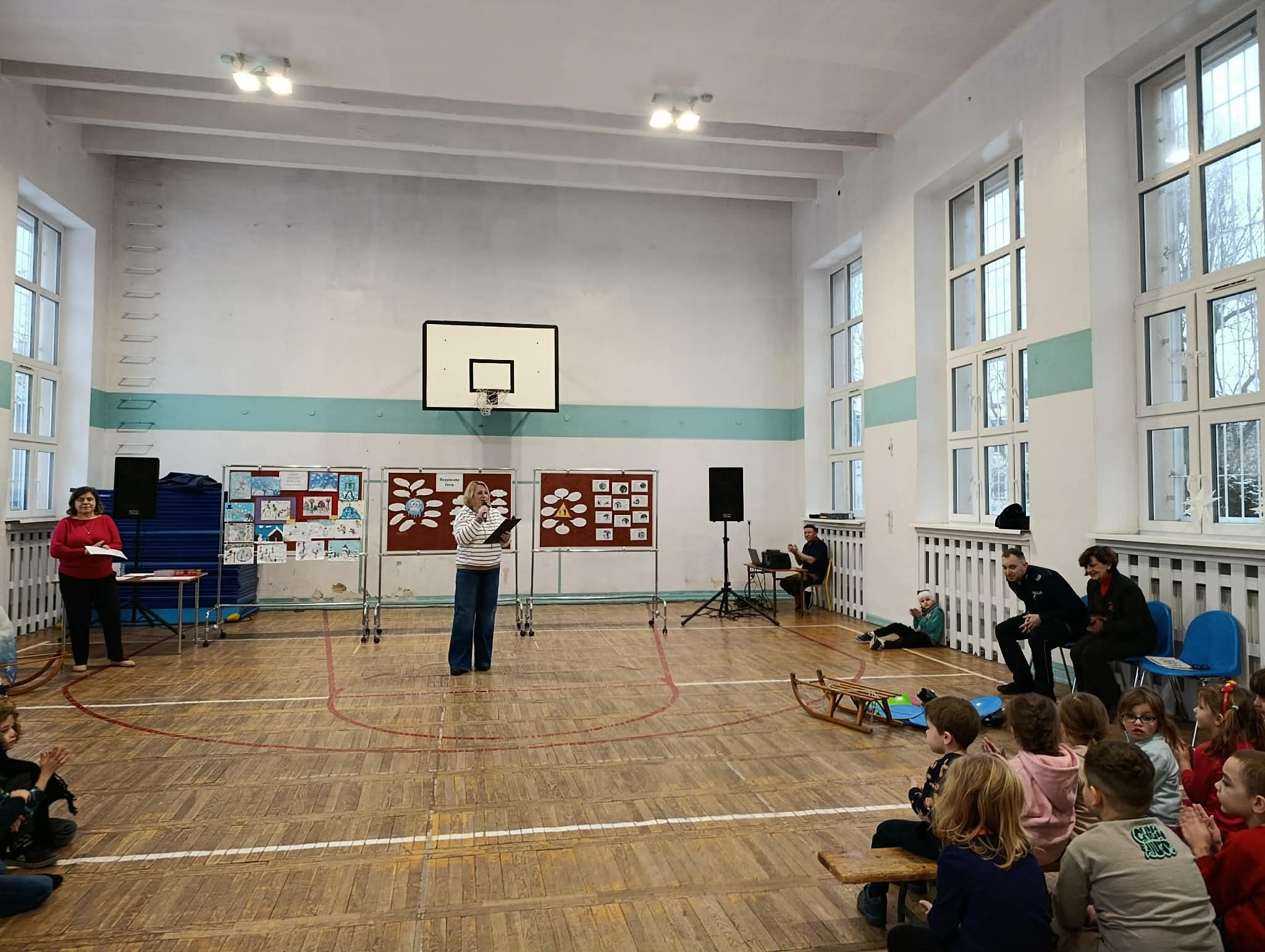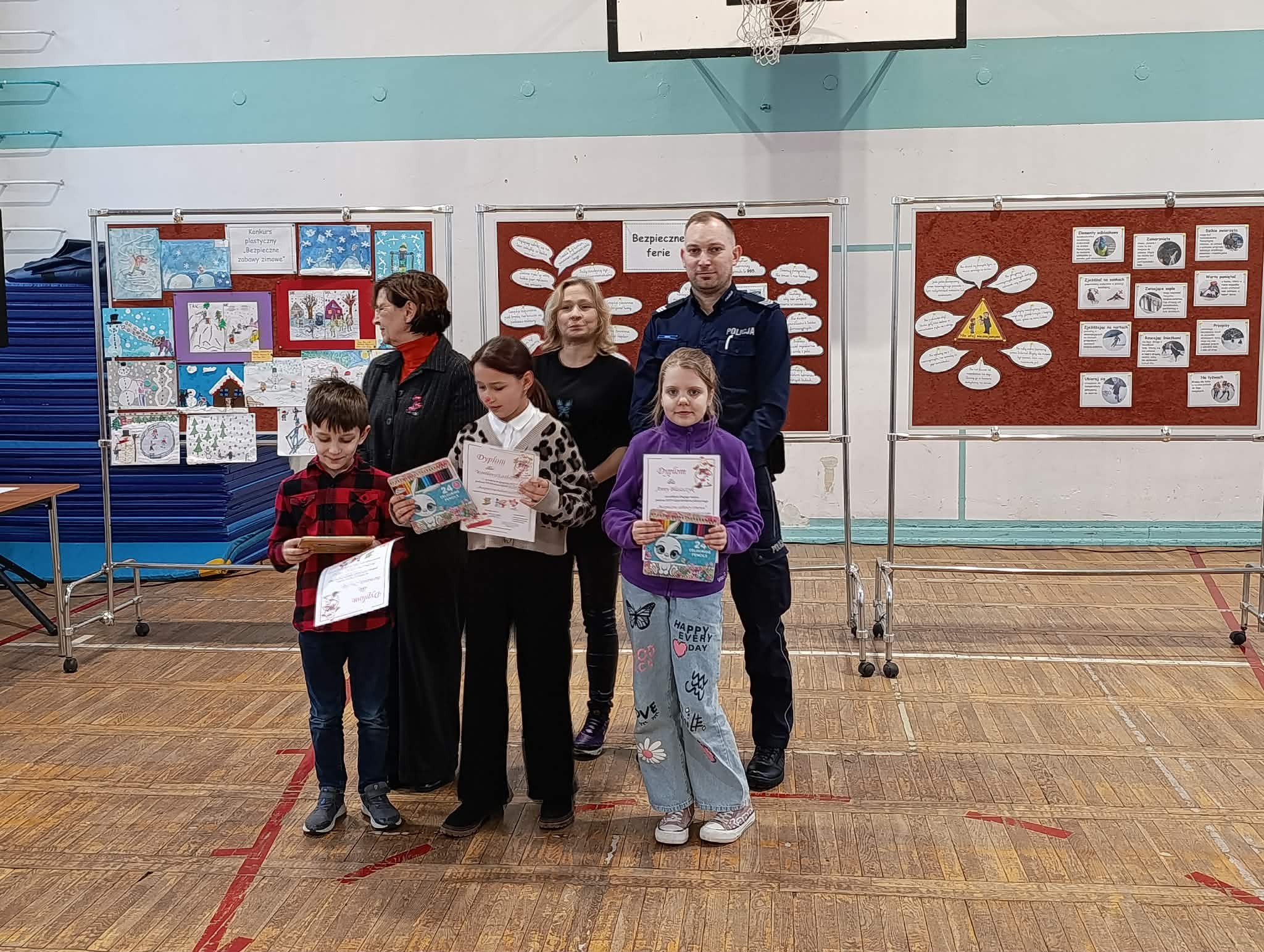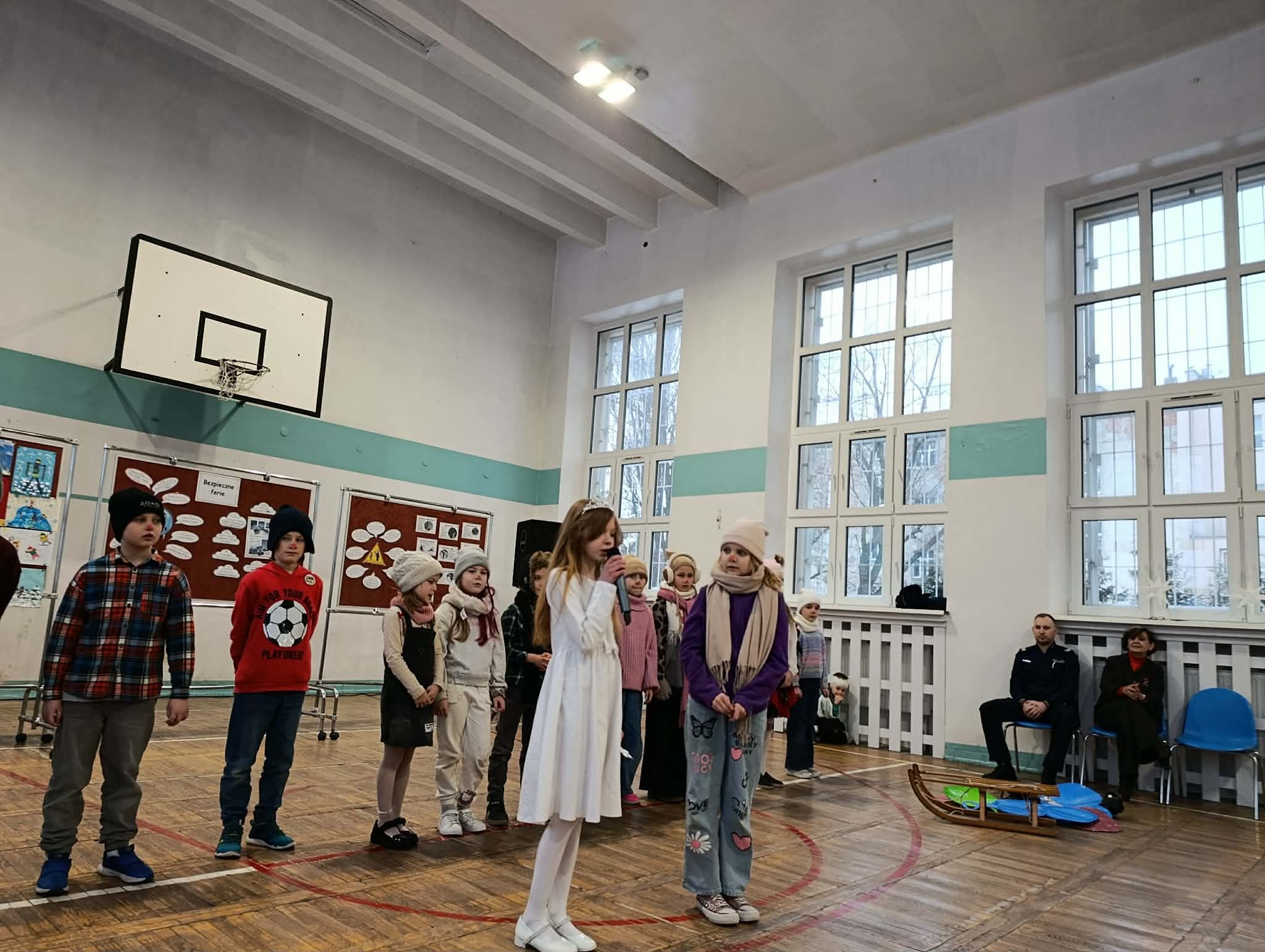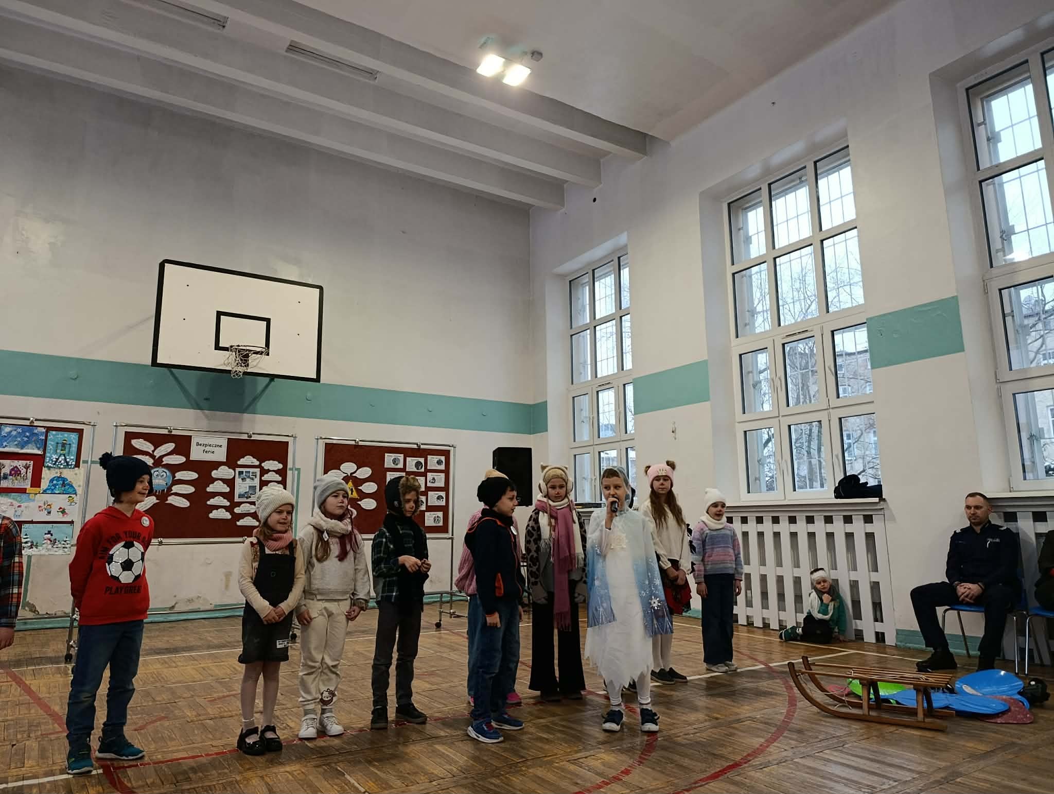 Jak co roku w ostatni piątek przed feriami odbyła się 24 edycja imprezy "Bezpieczne ferie". Jest to impreza dla klas 1-3 i przedszkolaków z zaprzyjaźnionych przedszkoli PM 83, PM 224, PM 107, PM 138. Dzieci utrwaliły wiadomości o bezpieczeństwie podczas zimowych zabaw na powietrzu. Oglądały przedstawienie "Zimowe harce" w wykonaniu klasy 2b i 3b. Podczas imprezy zostały wręczone nagrody za prace w konkursie plastycznym "Bezpieczne zabawy zimowe". Nagrody wręczył pan dzielnicowy Dawid Schab. Wszystkim uczniom i przedszkolakom życzymy: BEZPIECZNYCH I UDANYCH FERII !!! :)