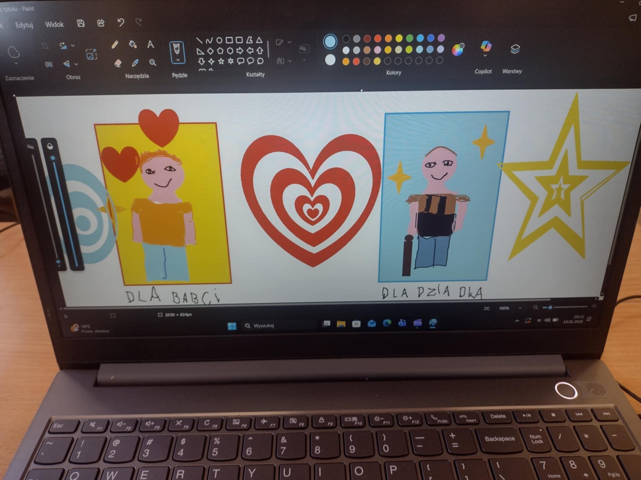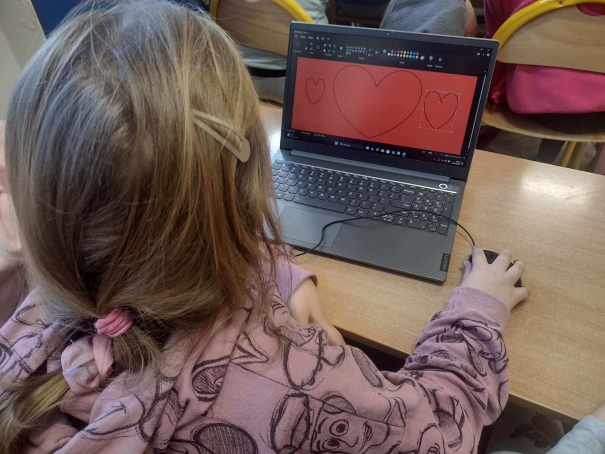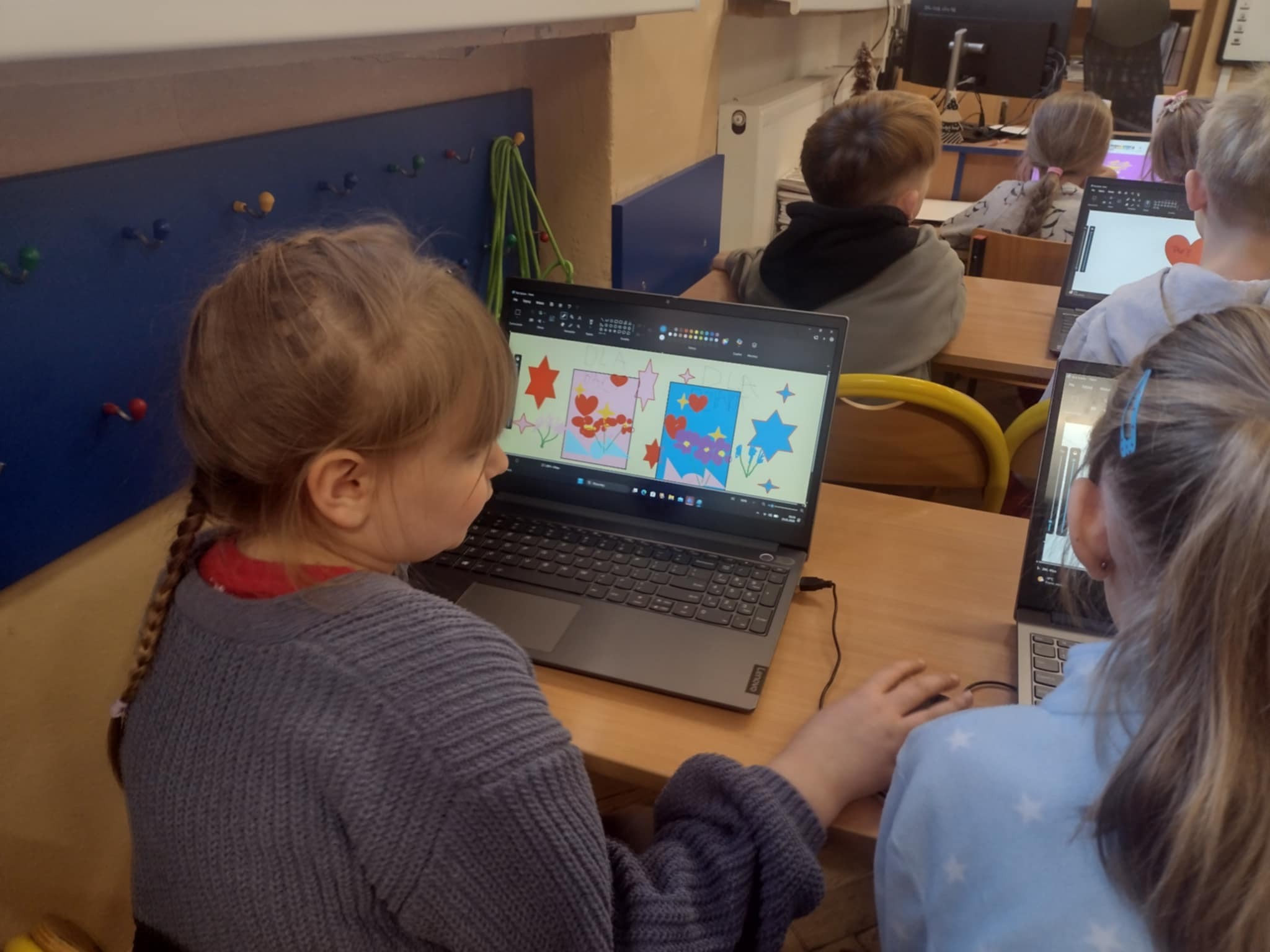 Obie klasy projektowały karty dla babć i dziadków wykorzystując program Paint.
