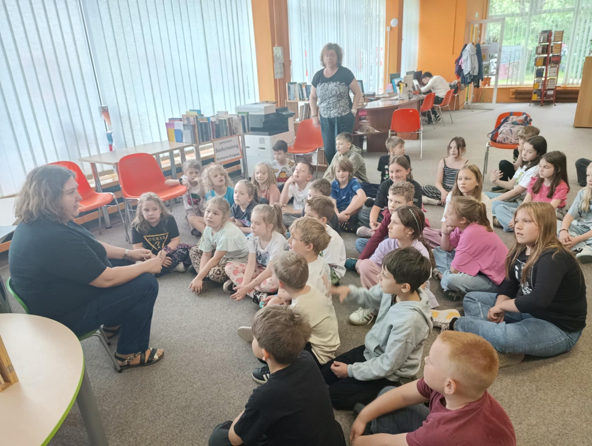 Uczniowie klasy 1B i 3A wzięli udział w warsztatach czytelniczych w Miejskiej Bibliotece na Wilczej Filia 55. Słuchali książki o bibliotece. Utrwalili wiadomości o najsłynniejszych polskich pisarzach dla dzieci. Układali tytuły lektur z rozsypanek. Wysłuchali też opowieści o kotach w formie teatrzyku kamishibai. Zachęcamy wszystkich uczniów do korzystania z biblioteki i czytania książek.