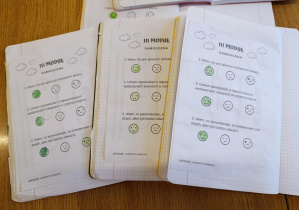 Uczniowie klasy 1B zakończyły realizację III modułu projektu - innowacji "Czytam z klasą lekturki spod chmurki edycja VI Świat pełen emocji". III moduł "Strach i odwaga" były dla klasy bardzo ważnym modułem, bo wiązały się bezpośrednio z kolegą z klasy. Czytaliśmy w klasie książkę "Teraz tu jest nasz dom" Barbary Gawryluk, która opowiadała o rodzinie ukraińskiej, która ewakuowała się z Ukrainy podczas wojny do Polski. Dzieci słuchały o tym jak dzieci z Ukrainy uczyły się języka i poznawały nasz kraj. Oraz jak czuły się w przedszkolu i szkole. Rysowały strach podczas działań wojennych oraz odwagę Polaków pomagających uchodźcom. Na mapie zaznaczaliśmy miejsca wędrówki tej rodziny. Wychowawca przygotował prezentację pokazującą piękno przedwojennej Ukrainy - aby dzieci poznały naszych sąsiadów. (#Ukraina 2022 | Genially) Na koniec wykonaliśmy zadanie emocjonalne z pomocą karty pracy: "Emocje co czuję" - zamiast drzewka emocji dzieci rysowały w kole kiedy czują konkretne emocje: smutek, strach, radość, lęk, spokój, złość.