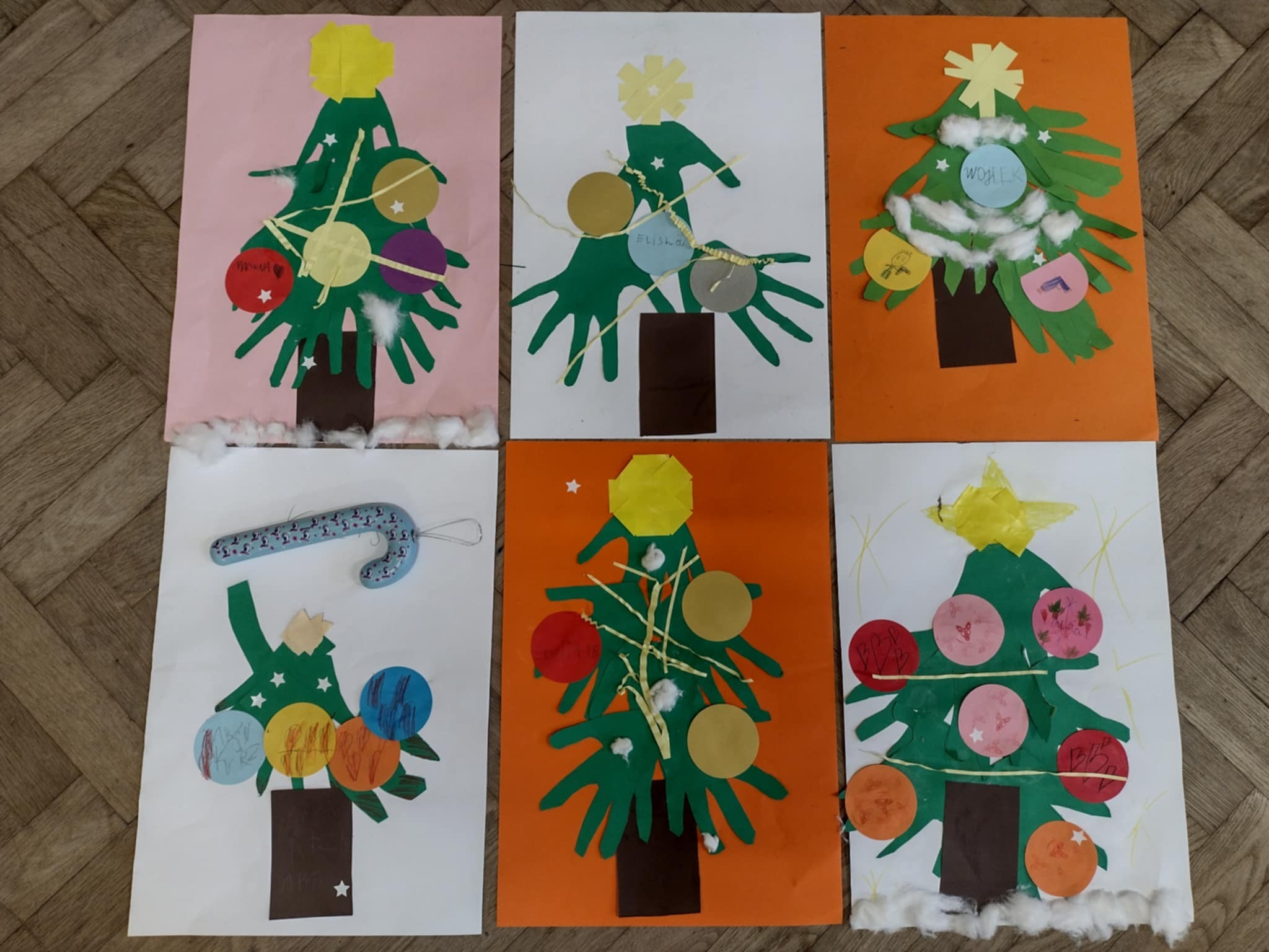 Odrysowywanie dłoni, wycinanie, przyklejanie rozwijanie małej motoryki.