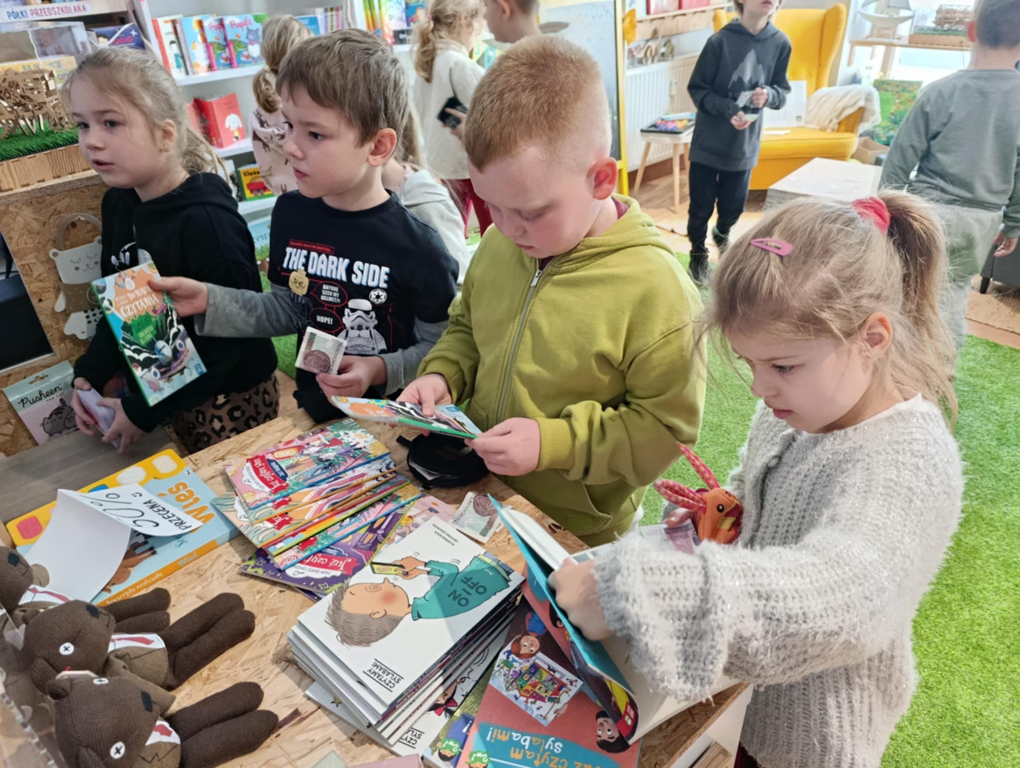 Klasa 1B odwiedziła księgarnię "Zaczytana Łódka" - jedną z nielicznych księgarni w Łodzi. Dzieci poznawały różnice między biblioteką a księgarnią. Wzięły udział w warsztatach czytelniczo - detektywistycznych na podstawie książki "Zagadki detektywistyczne - rusz głową i znajdź rozwiązanie..." Odczytywały też zaszyfrowany napis i odgadywały przedmioty za pomocą dotyku. Najlepszym momentem był jednak samodzielny zakup samodzielnie wybranej książki :) Dzieci były zachwycone, każdy kupował coś innego. Jednocześnie ćwiczyły umiejętności matematyczne obliczając ile zostanie im reszty. Warsztaty bardzo udane, polecamy wszystkim :)