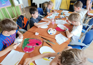 Uczniowie klasy 1B byli gośćmi swojej koleżanki Gai na wystawie jej prac. Gaja bardzo lubi malować i mogliśmy podziwiać jej prace dzięki uprzejmości jej rodziców, którzy prowadzą Fundację "Trzy piętra". Oprócz prac Gai podziwialiśmy prace wolontariuszki z innego kraju. Następnie uczniowie uczestniczyli w warsztatach plastycznych. Mogli na płótnie w kształcie serca namalować coś dla mamy i taty. Piękne prace uczniowie zanieśli dziś do domu aby wręczyć rodzicom. Mamy nadzieję, że z wolontariuszami z innych krajów - dzięki rodzicom Gai i Samuela spotkamy się jeszcze w kolejnym roku szkolnym.