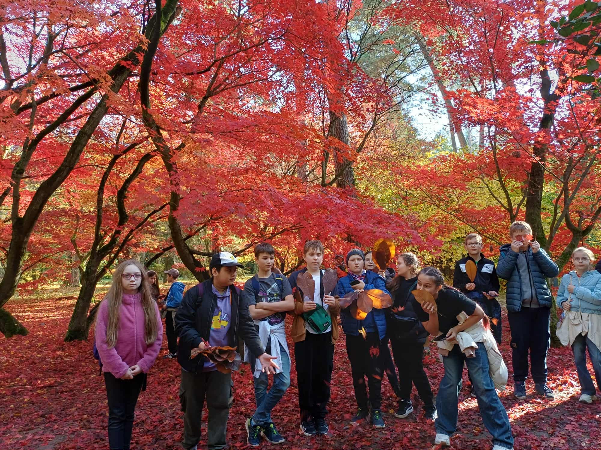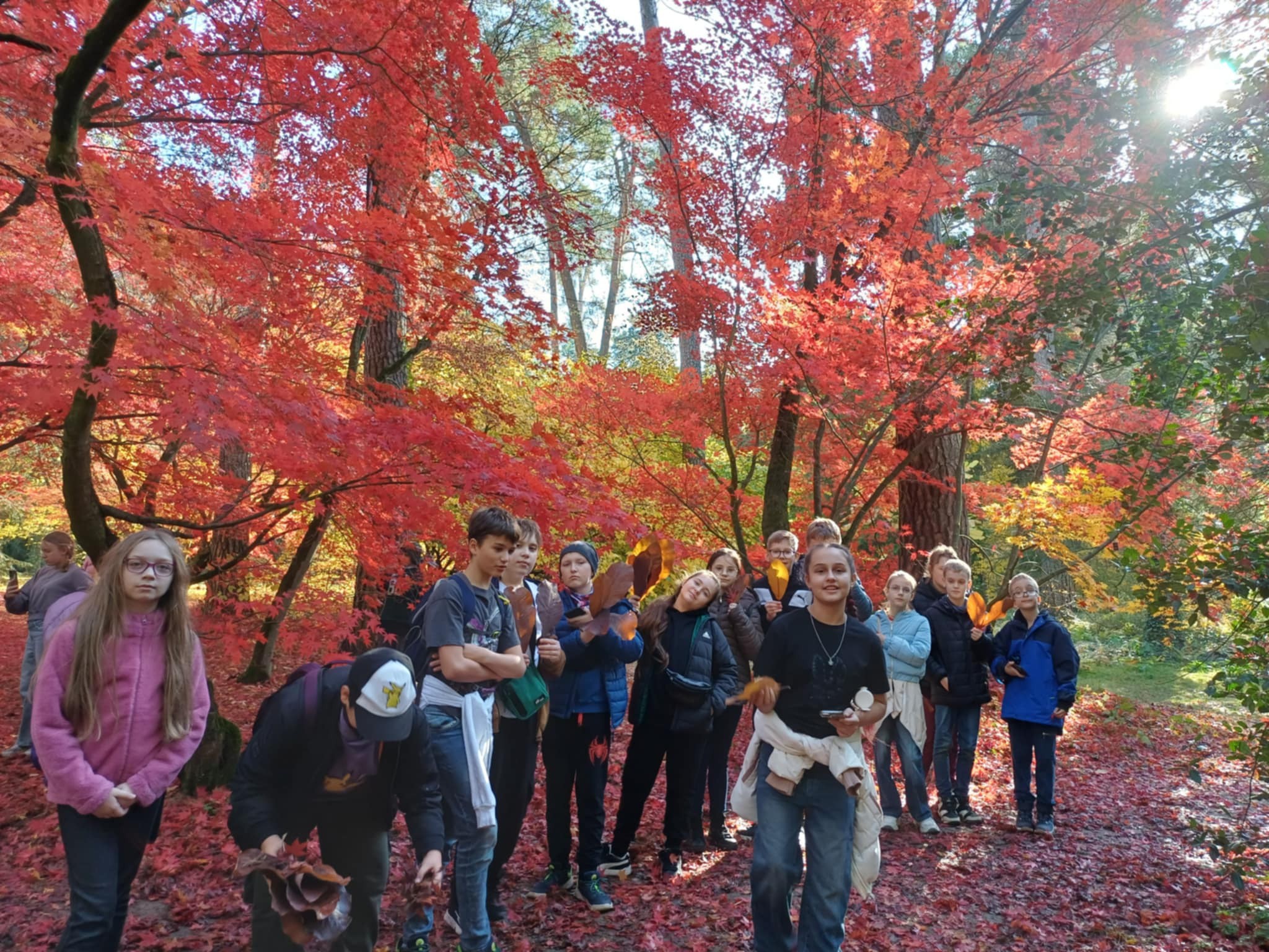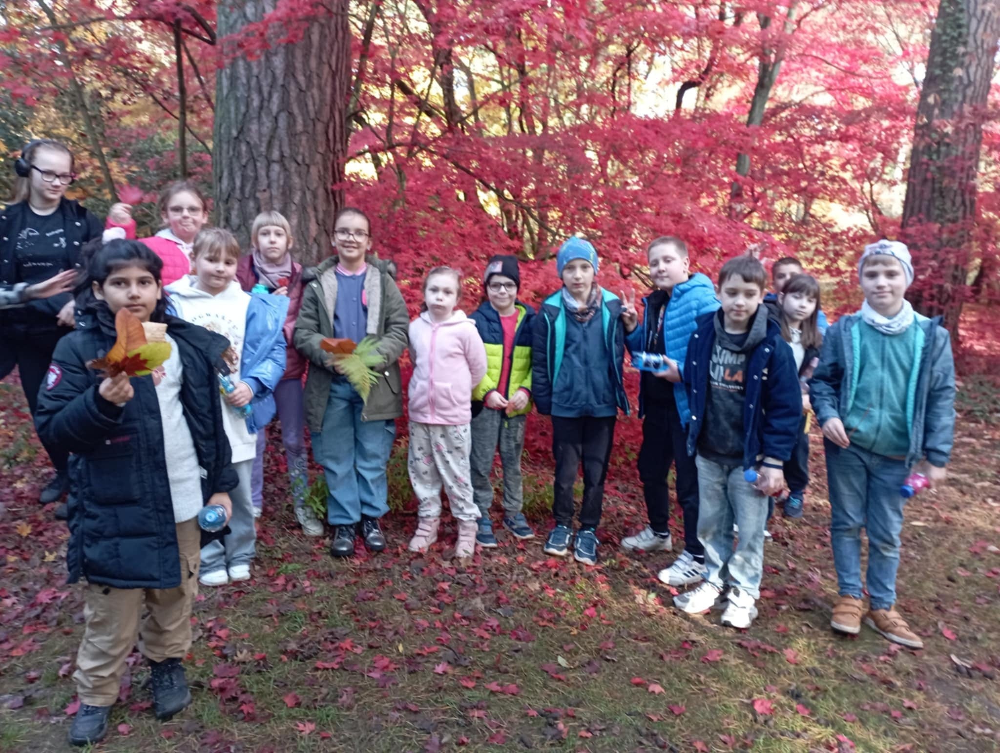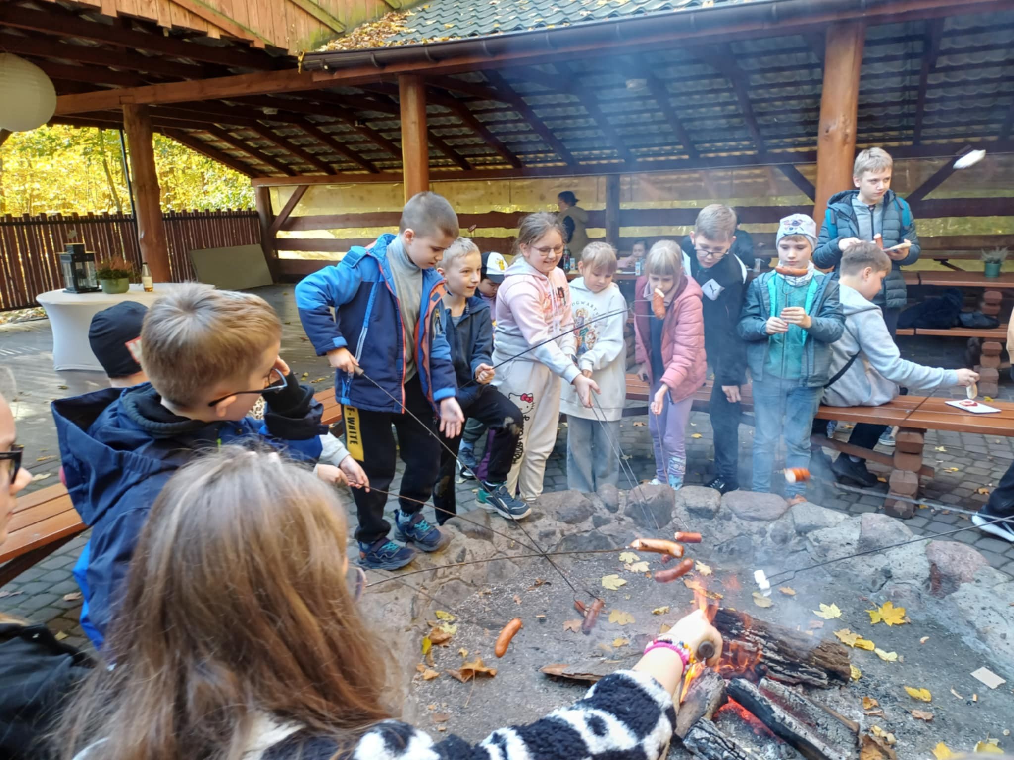 23 października uczniowie klas 2A, 5A i 6B wybrali się na wycieczkę do Arboretum i Alpinarium w Rogowie. Podczas spaceru mogli podziwiać różnorodne gatunki drzew i roślin oraz poznać ciekawostki o przyrodzie. Po zwiedzaniu odbyło się ognisko, przy którym wszyscy wspólnie piekli kiełbaski i bawili się na świeżym powietrzu. To był dzień pełen wrażeń i integracji w pięknym, jesiennym otoczeniu natury.