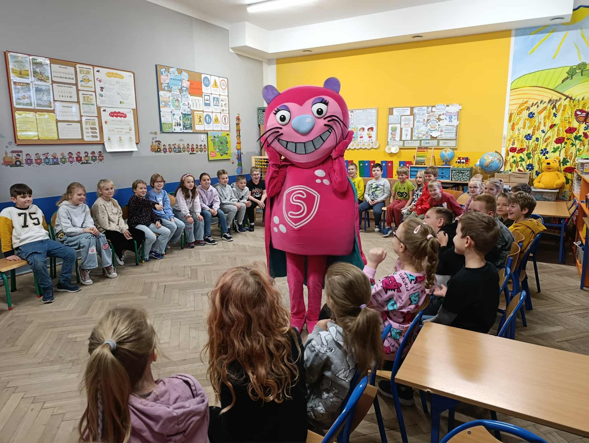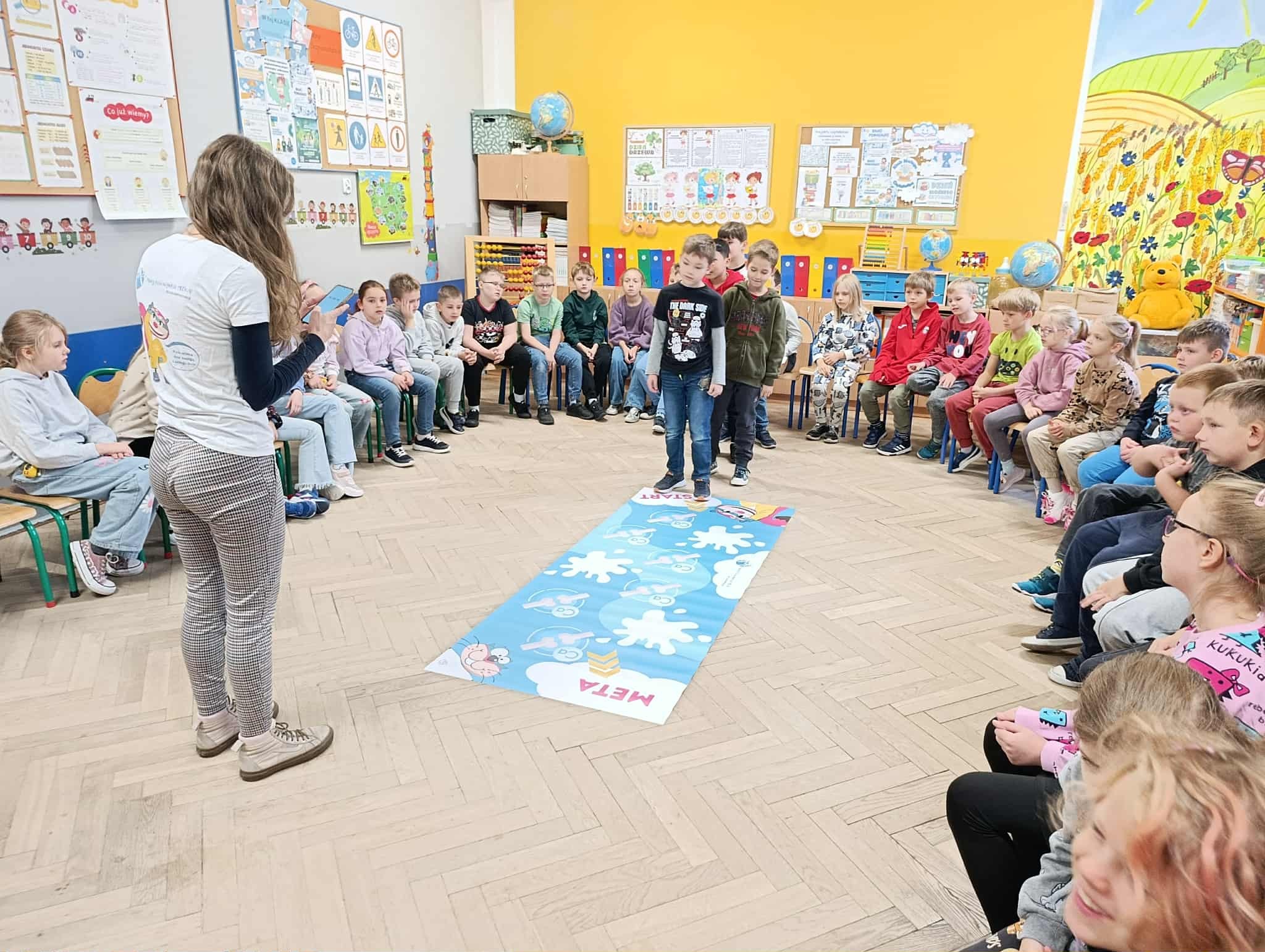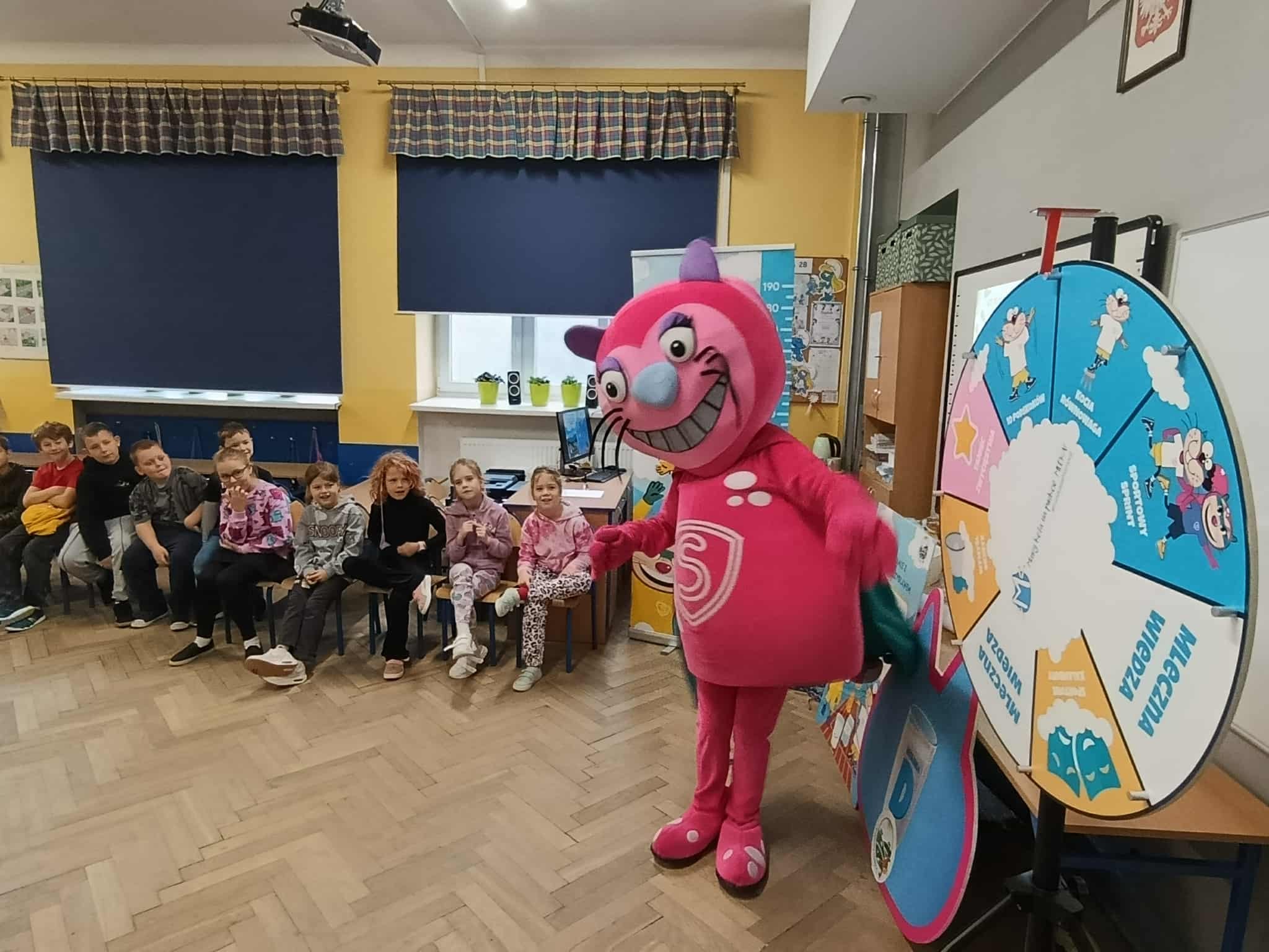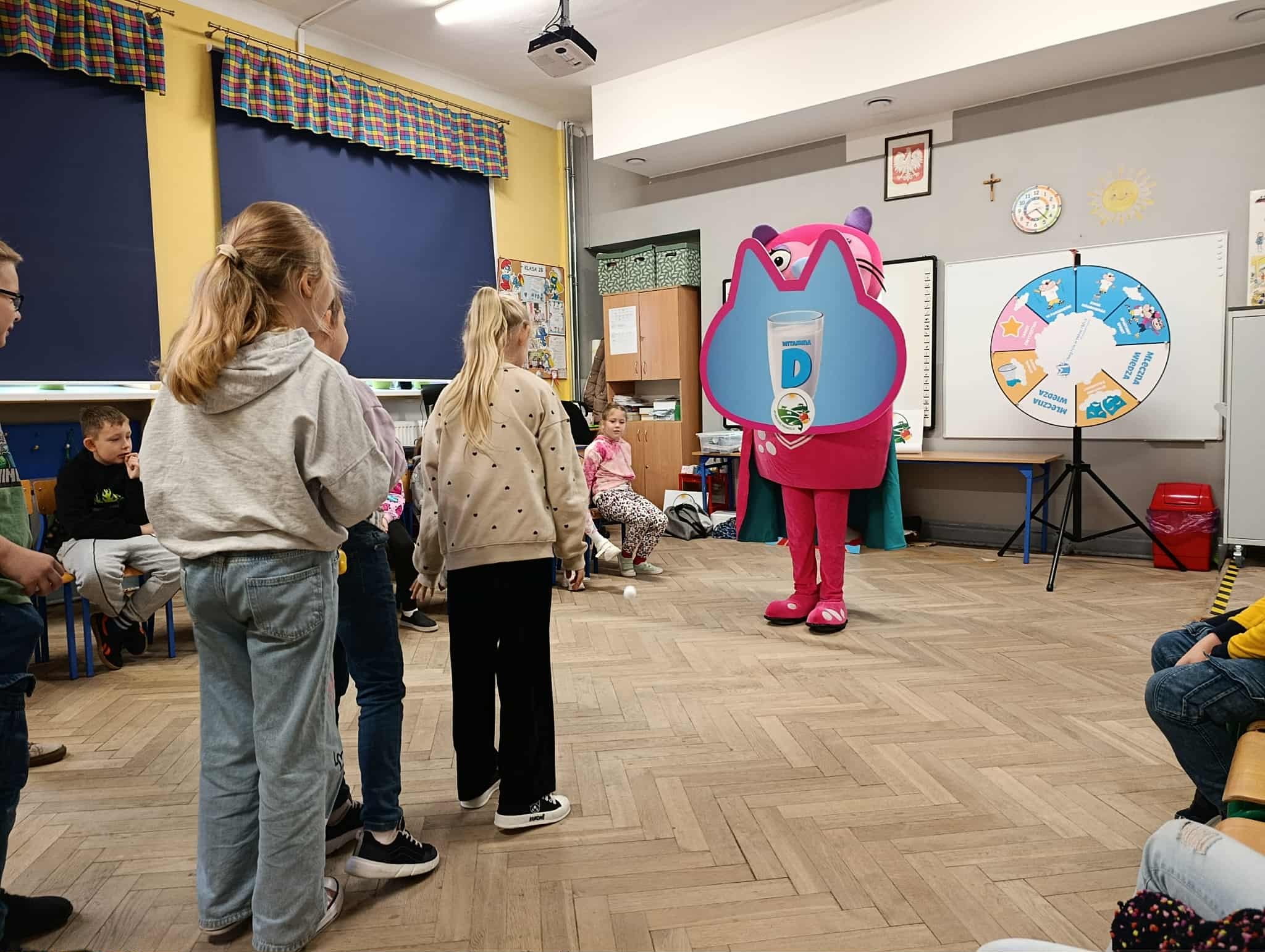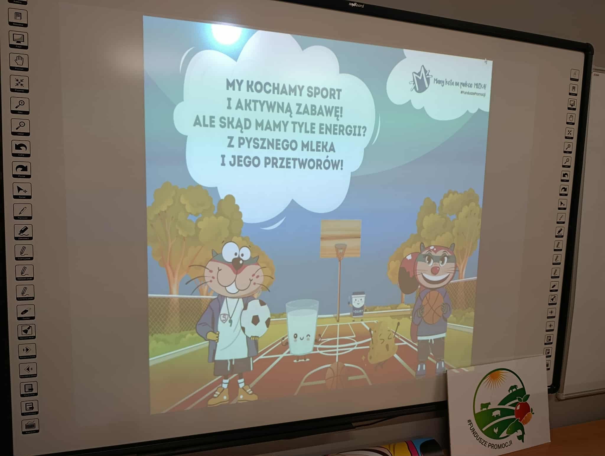 Uczniowie klasy 2b i 3b wzięli udział w warsztatach w ramach projektu "Mamy Kota na punkcie mleka". Uczniów odwiedziła Mleczna Kita i wspólnie utrwalali wiadomości o wartościach odżywczych mleka i produktów mlecznych. Dzieci wzięły udział w zabawach ruchowych i quizach. Na koniec każdy dostał pamiątkową plakietkę, plan lekcji, dyplom i zakładkę do książki. Wszyscy byli bardzo zadowoleni:)