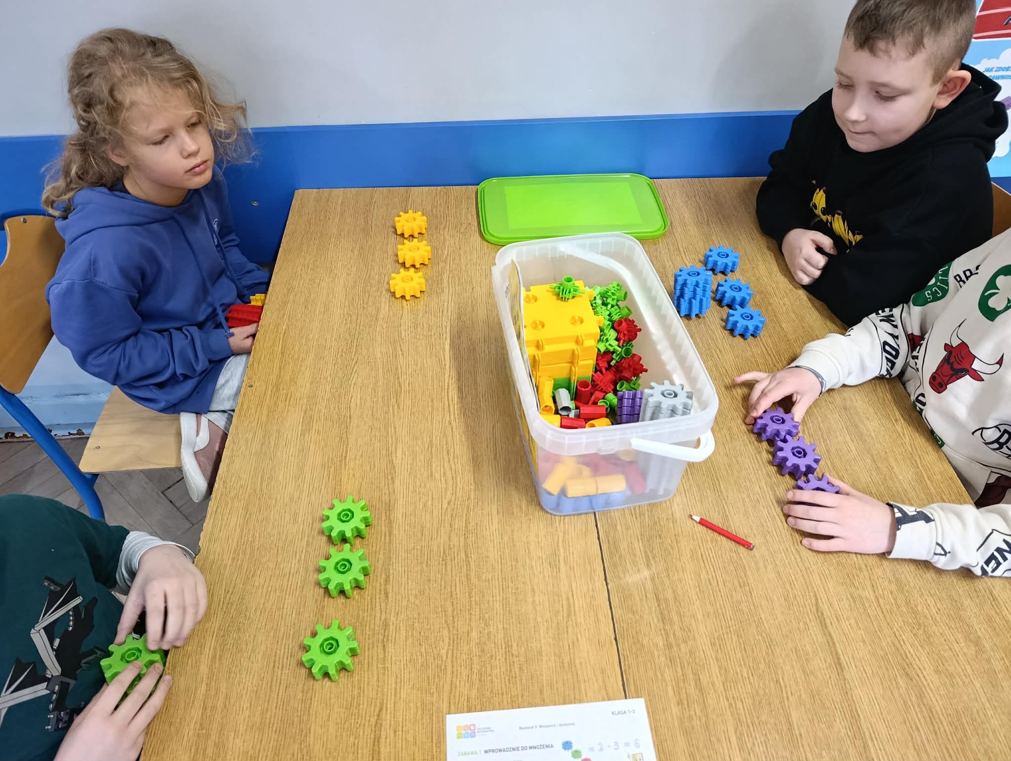 Klasa 2B zrealizowała kolejne zadanie z projektu "Kolorowa matematyka z Korbo". Dzieci uczyły się mnożenia i układały wieże wg instrukcji.