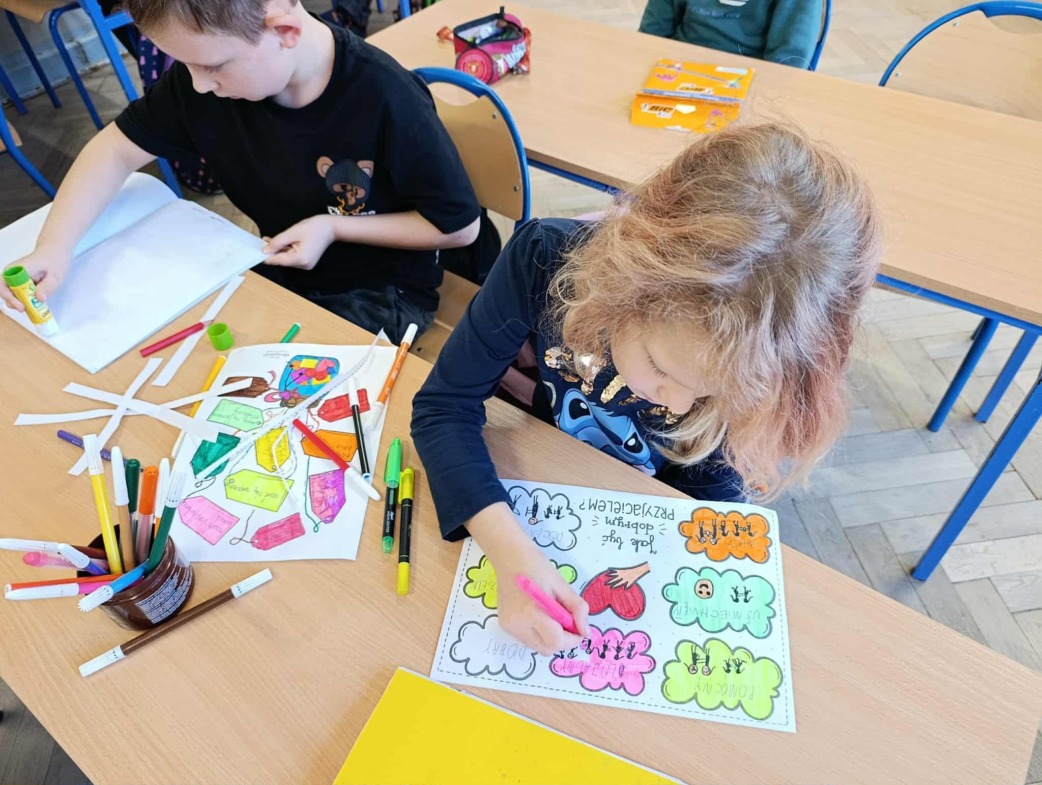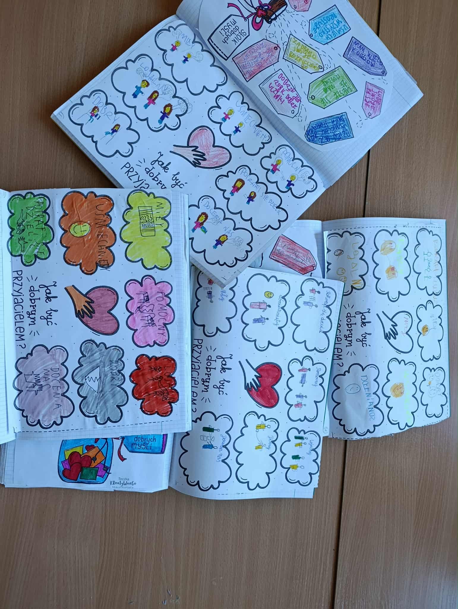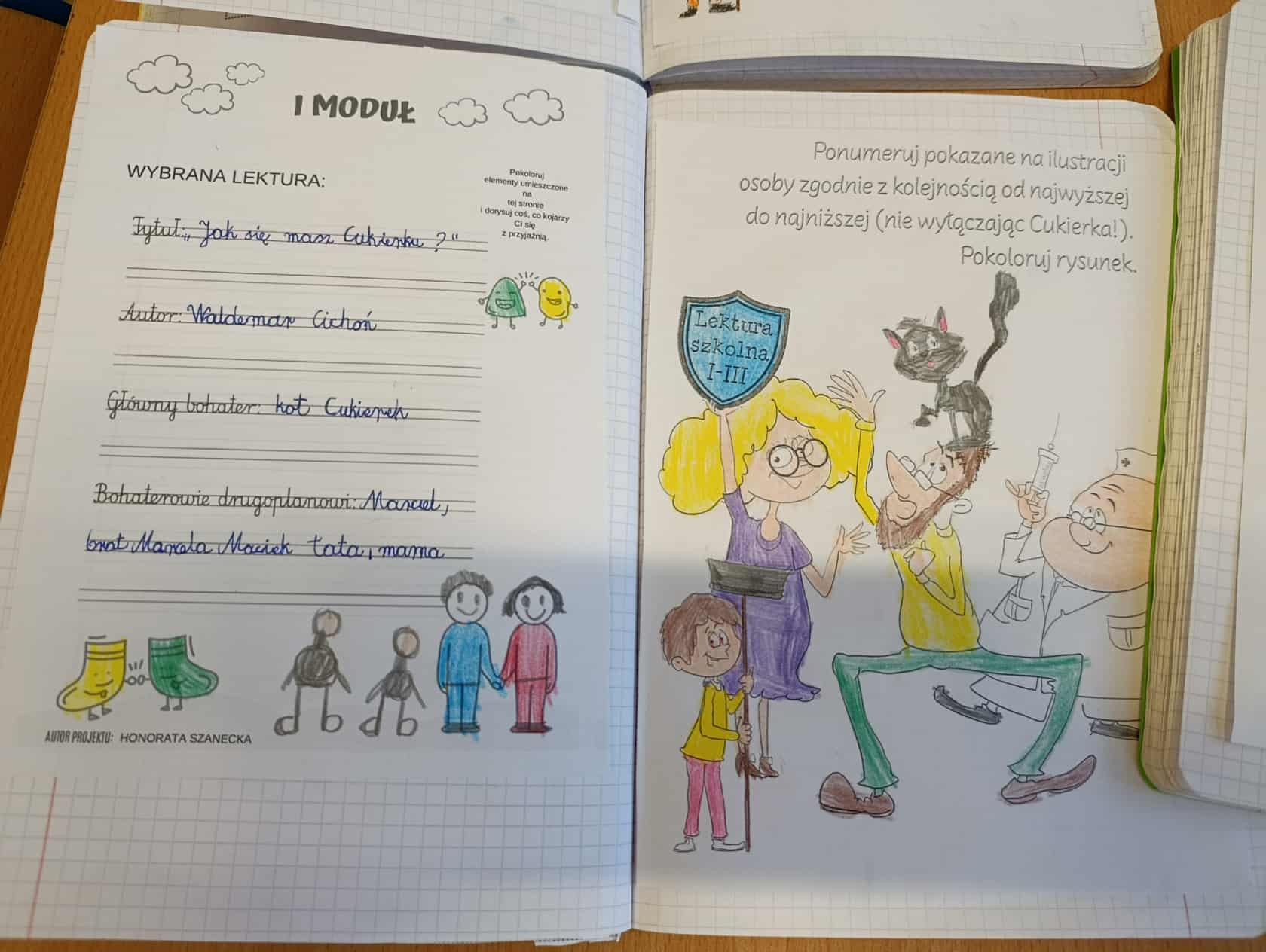 Klasa 2B zakończyła realizację I modułu projektu "Czytam z klasą lekturki spod chmurki" edycja VII "Pod parasolem przyjaźni". Podczas realizacji I modułu "Przyjaciel potrzebny od zaraz" uczniowie czytali w klasie z wychowawcą książkę "Jak się masz Cukierku". Pani bibliotekarka czytała także uczniom skrót pierwszej książki o Cukierku w formie teatrzyku kamishibai. Dzieci wykonały także kocią rodzinkę z modeliny oraz zadania przyjacielskie: słoik dobrych myśli oraz jak być dobrym przyjacielem mapa myśli. Na koniec każdy otrzymał notesik Cukierka na pamiątkę lektury książek o Cukierku, które klasa przeczytała już trzy.