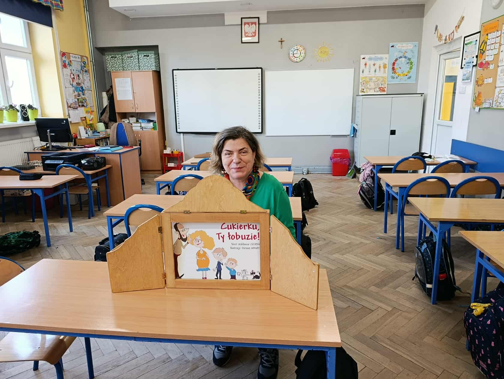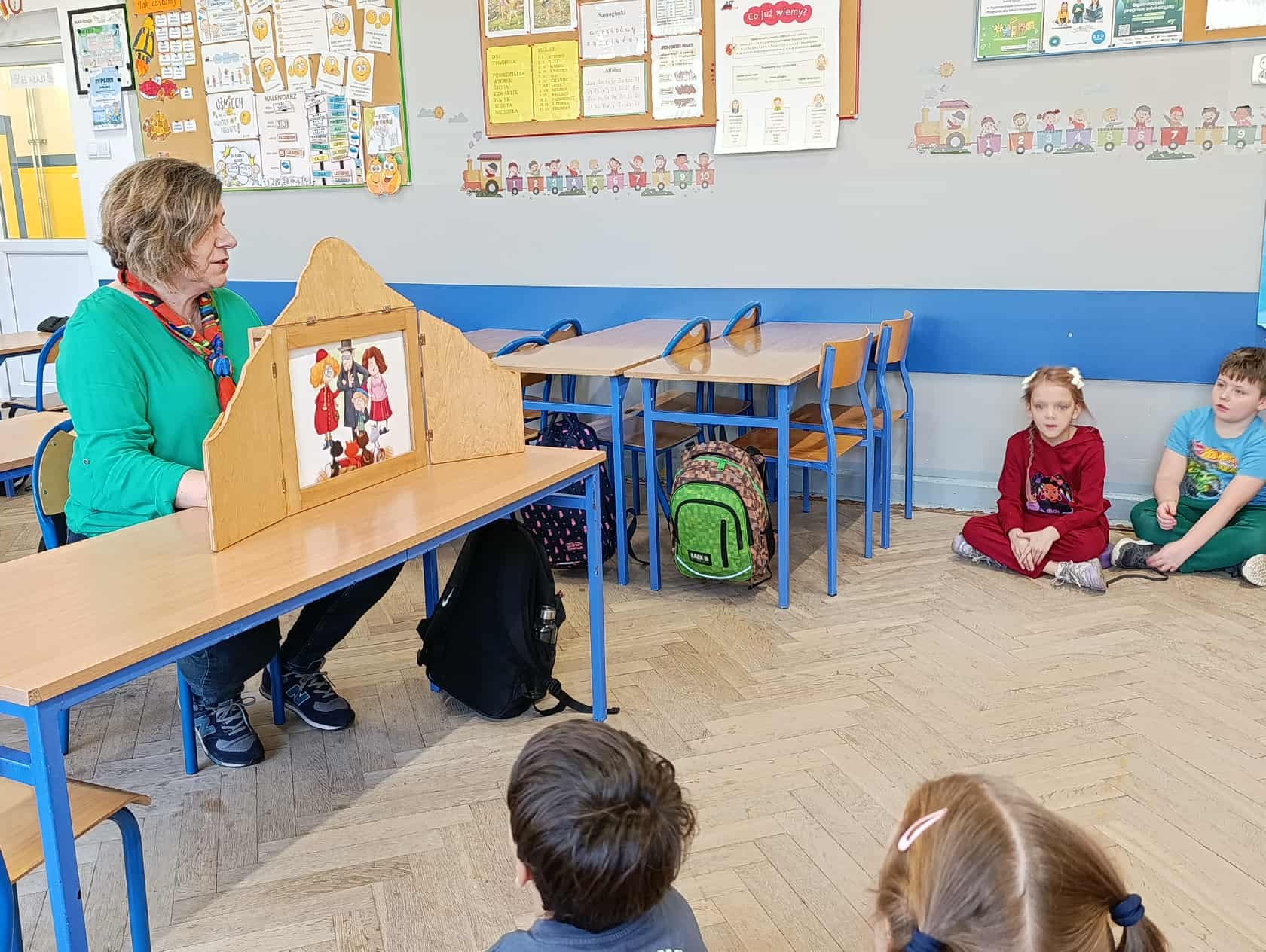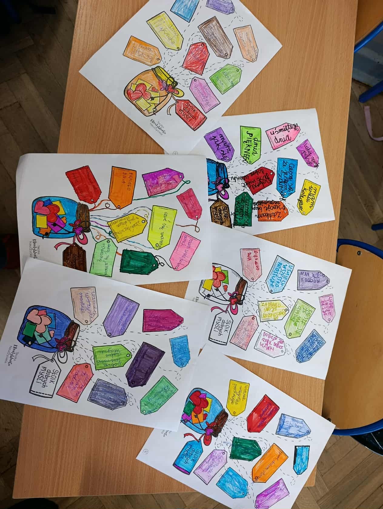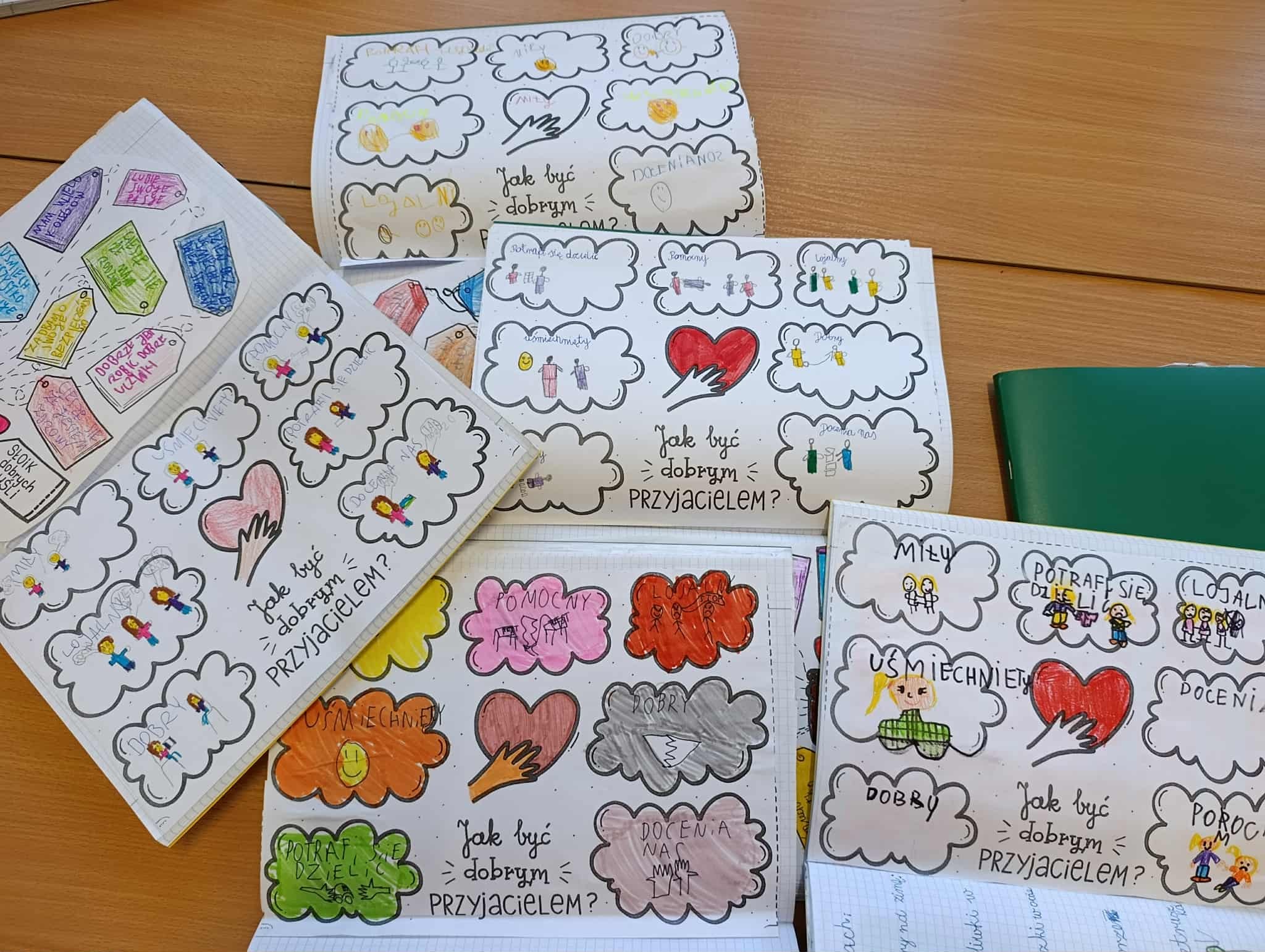 Klasa 2B zakończyła realizację I modułu projektu "Czytam z klasą lekturki spod chmurki" edycja VII "Pod parasolem przyjaźni". Podczas realizacji I modułu "Przyjaciel potrzebny od zaraz" uczniowie czytali w klasie z wychowawcą książkę "Jak się masz Cukierku". Pani bibliotekarka czytała także uczniom skrót pierwszej książki o Cukierku w formie teatrzyku kamishibai. Dzieci wykonały także kocią rodzinkę z modeliny oraz zadania przyjacielskie: słoik dobrych myśli oraz jak być dobrym przyjacielem mapa myśli. Na koniec każdy otrzymał notesik Cukierka na pamiątkę lektury książek o Cukierku, które klasa przeczytała już trzy.
