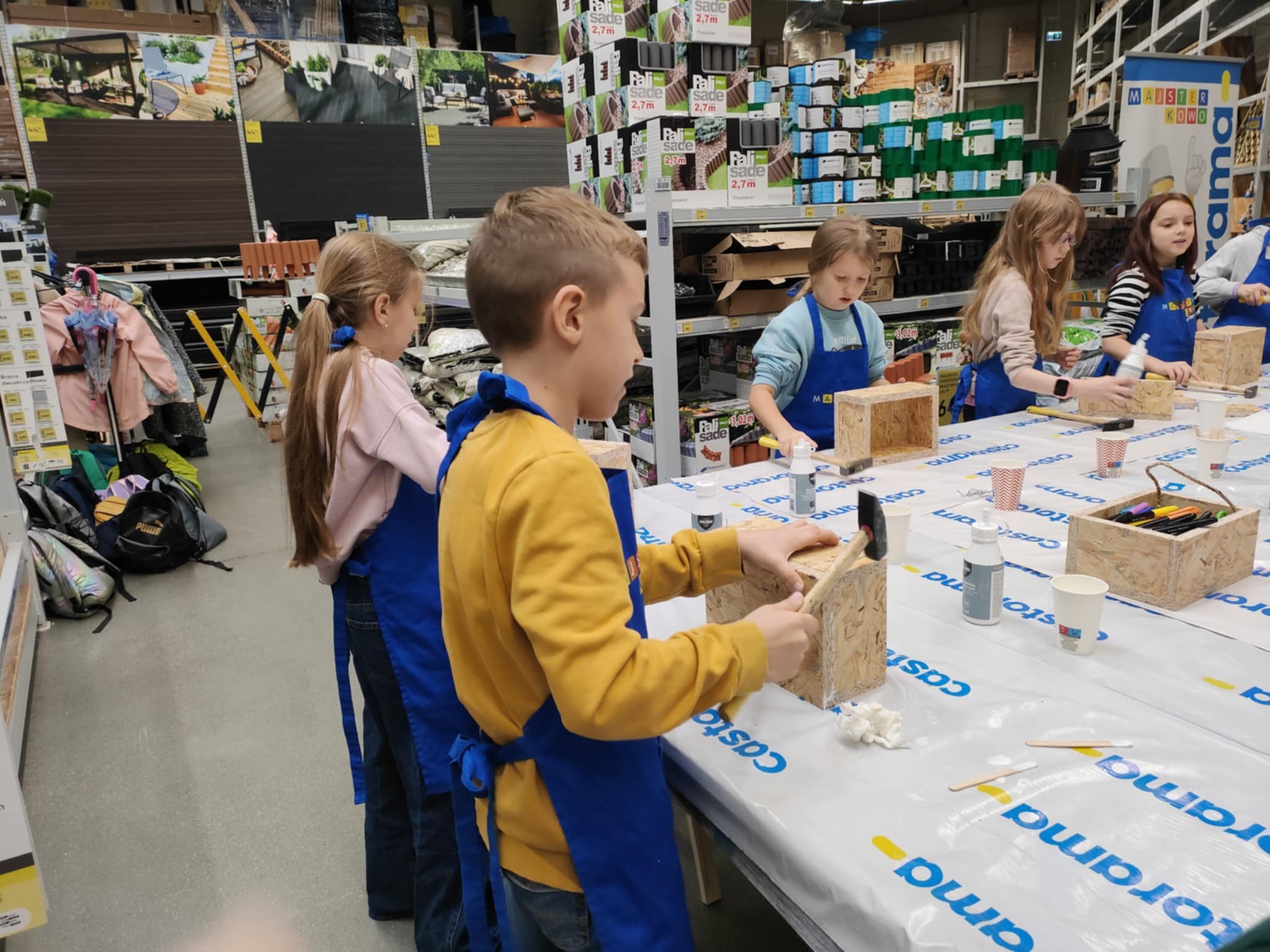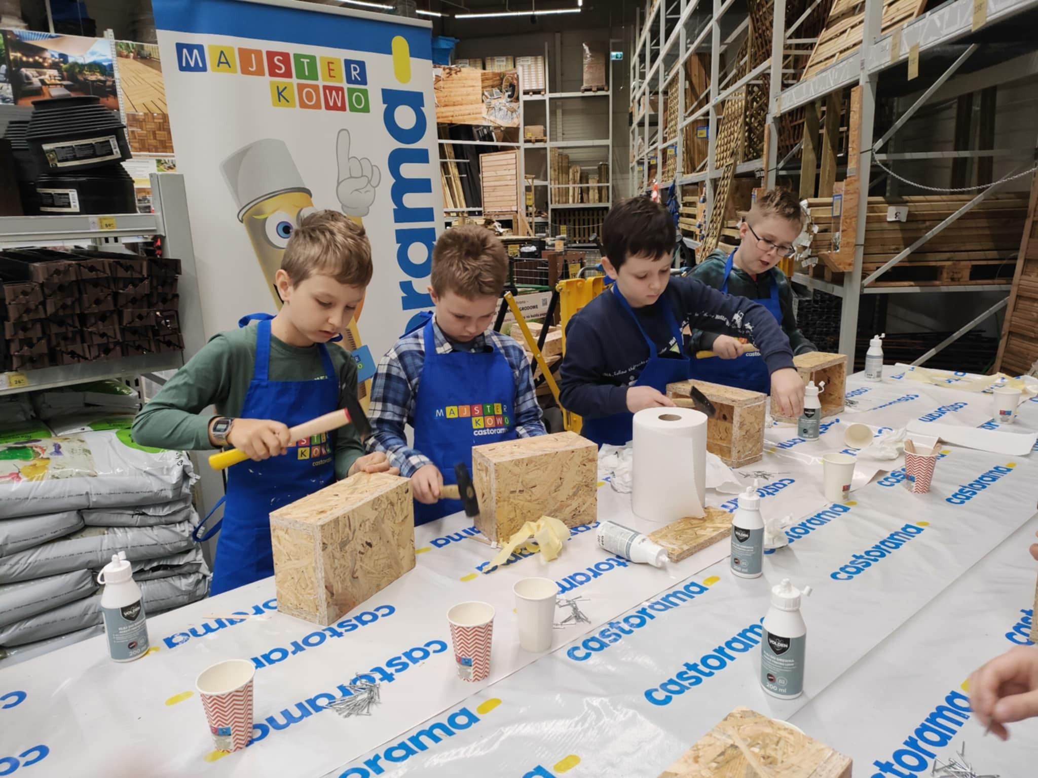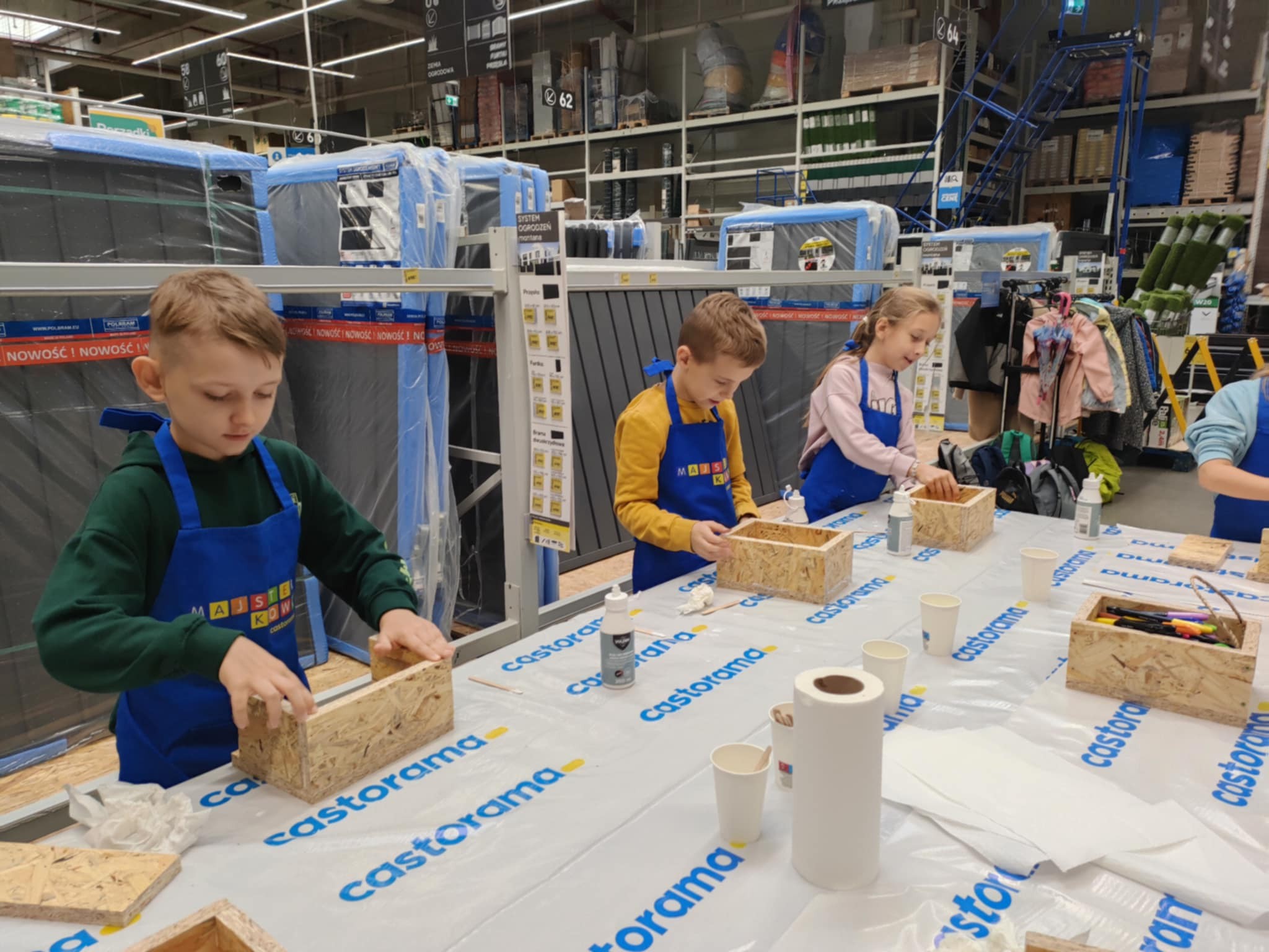 10 października uczniowie klasy 3b uczestniczyli w warsztatach kreatywnych "Majsterkowo". Z pomocą pracownika Castoramy skonstruowali drewniane skrzyneczki na swoje skarby. Po zapoznaniu z zasadami bezpieczeństwa dzieci z ogromnym zaangażowaniem łączyły drewniane elementy. Wszyscy byli bardzo zadowoleni i dumni z efektów swojej pracy.