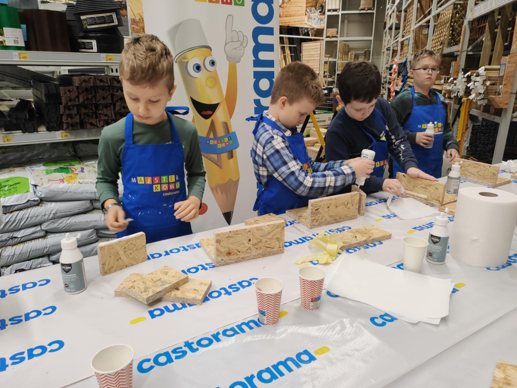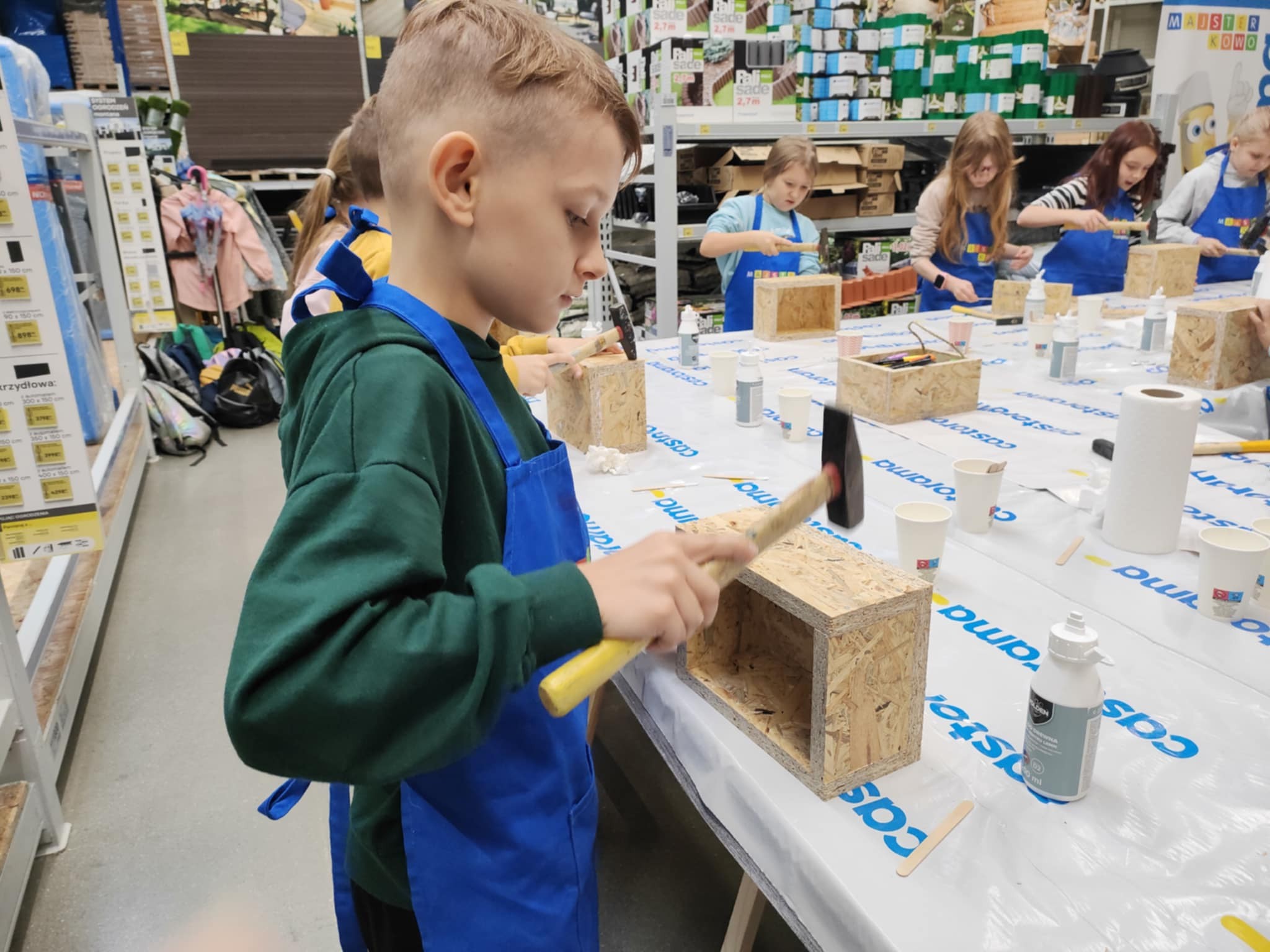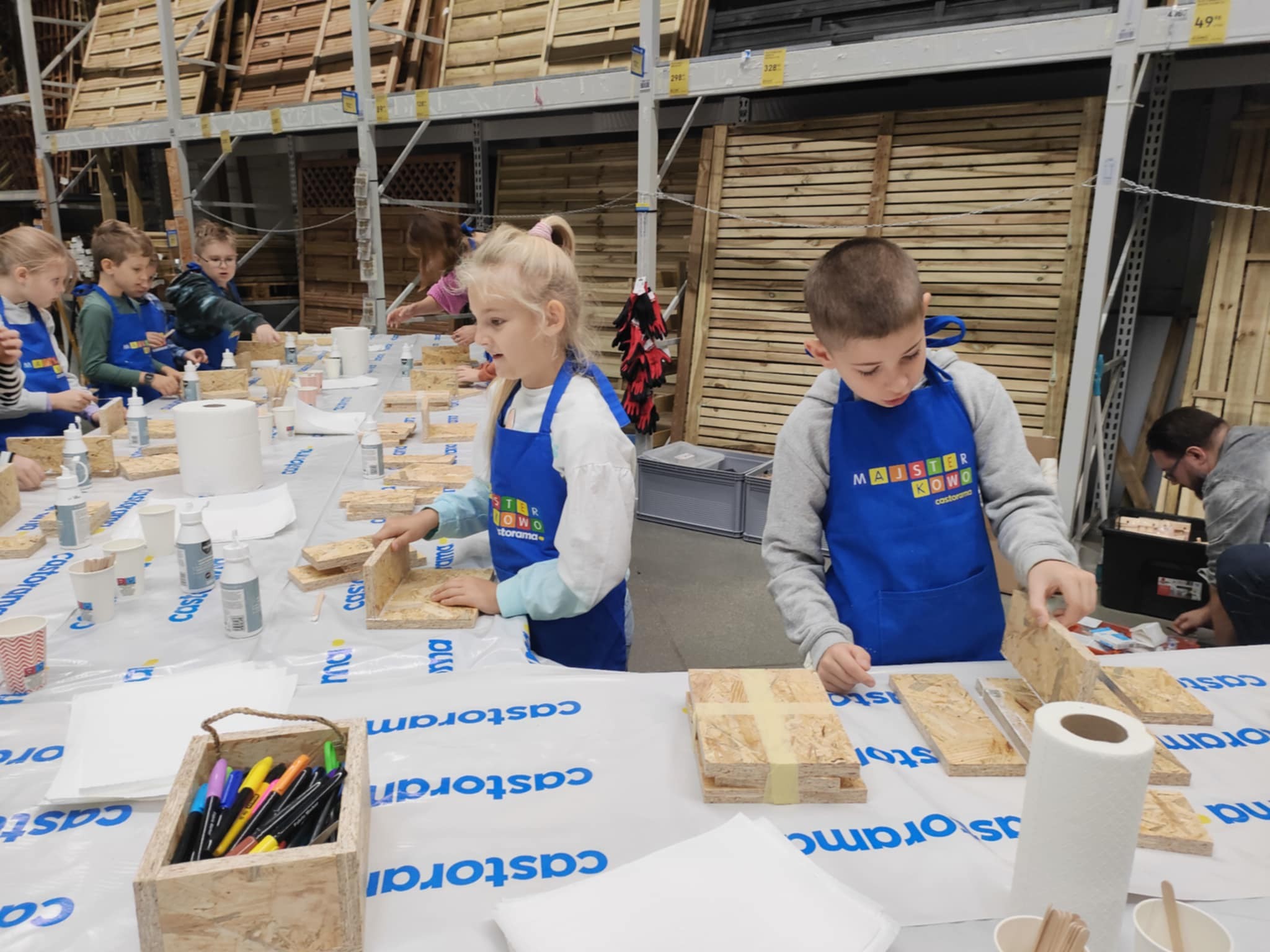 10 października uczniowie klasy 3b uczestniczyli w warsztatach kreatywnych "Majsterkowo". Z pomocą pracownika Castoramy skonstruowali drewniane skrzyneczki na swoje skarby. Po zapoznaniu z zasadami bezpieczeństwa dzieci z ogromnym zaangażowaniem łączyły drewniane elementy. Wszyscy byli bardzo zadowoleni i dumni z efektów swojej pracy.