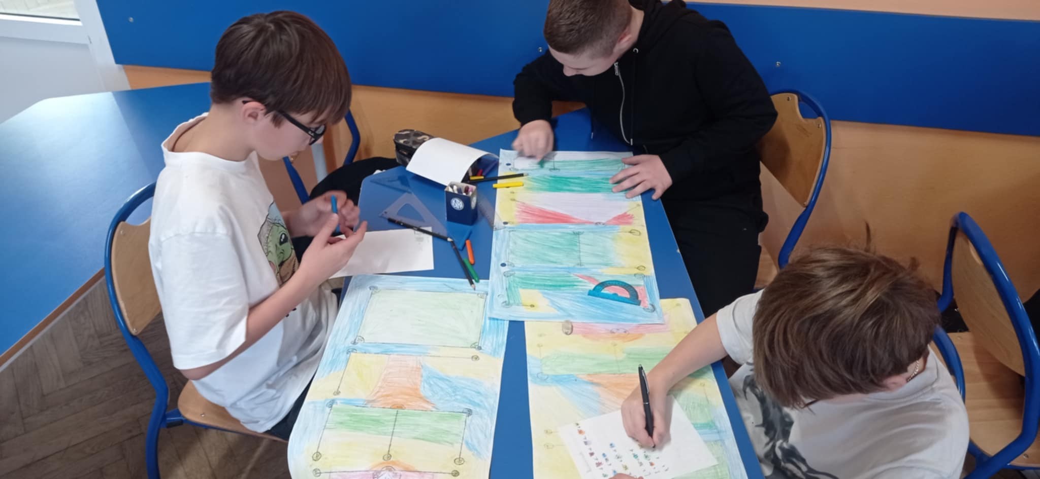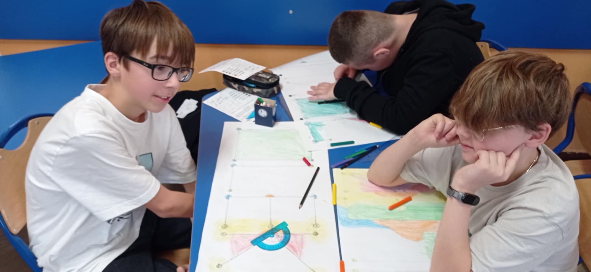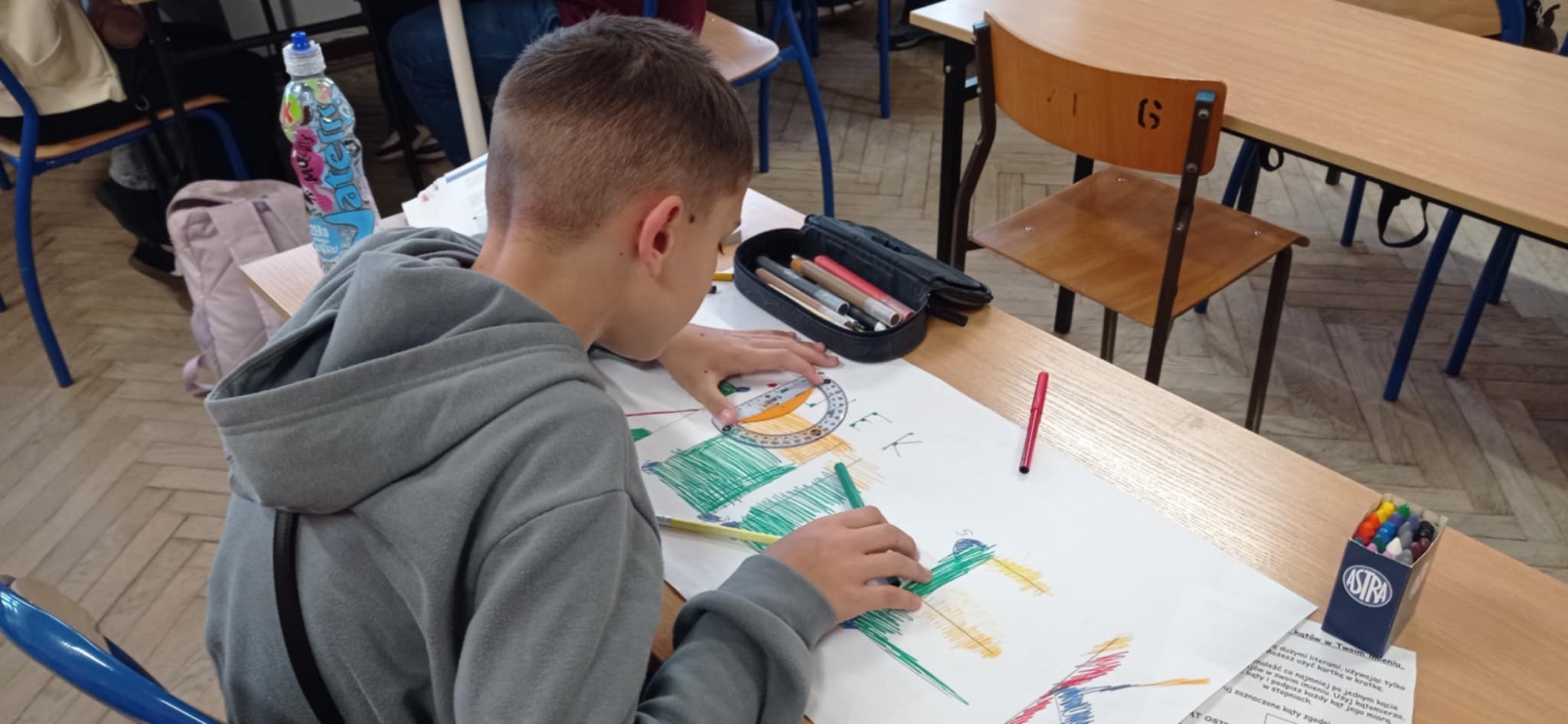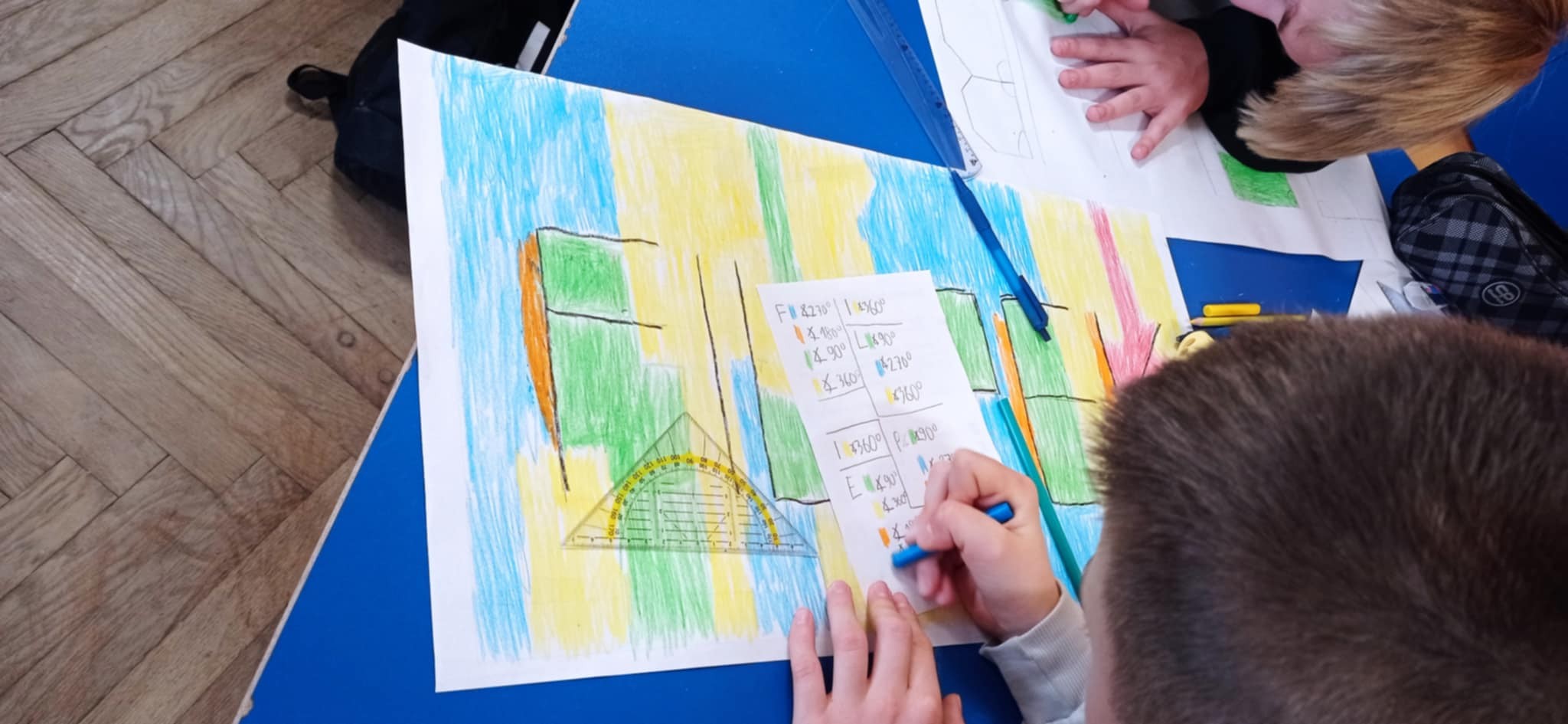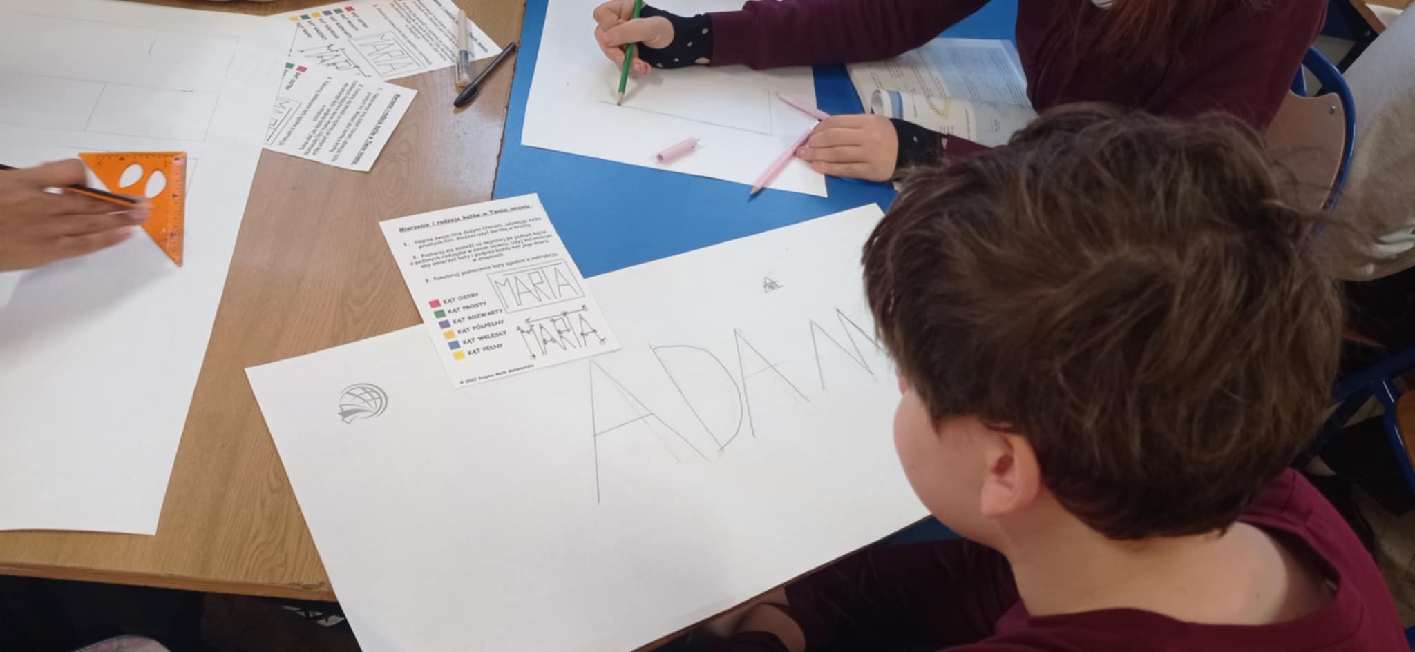 W ramach obchodów Europejskiego Tygodnia Świadomości Dysleksji, podczas lekcji matematyki uczniowie klasy 6a utrwalali rodzaje kątów oraz umiejętność ich mierzenia w nietypowy sposób. Zadaniem uczniów było napisanie swojego imienia za pomocą pisma technicznego, a następnie zgodnie z podanym kluczem pokolorowanie odpowiednich kątów na właściwy kolor. Ostatnim etapem zadania było wykonanie pomiarów wszystkich kątów w imieniu i stworzenie legendy. W trakcie zajęć uczniowie nie tylko utrwalali wiadomości matematyczne, ale również ćwiczyli percepcję wzrokową, koordynację wzrokowo – ruchową, motorykę małą, koncentrację, a także umiejętność czytania ze zrozumieniem.