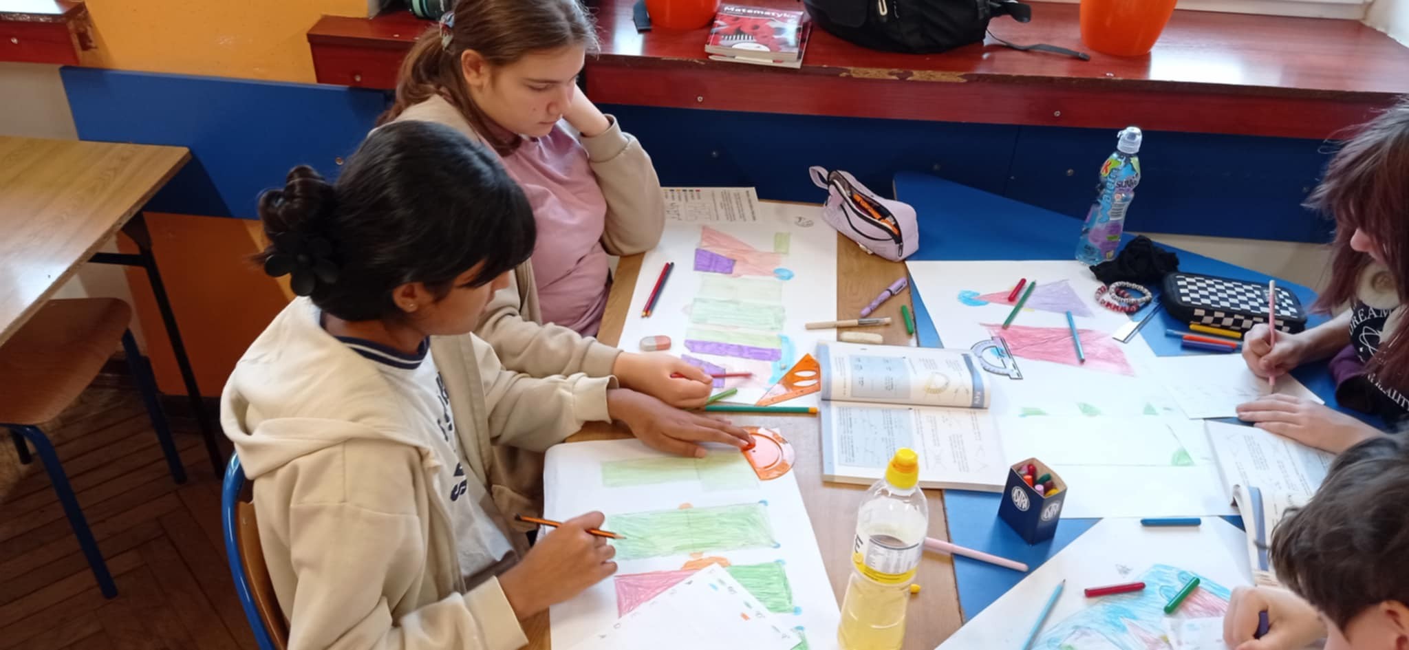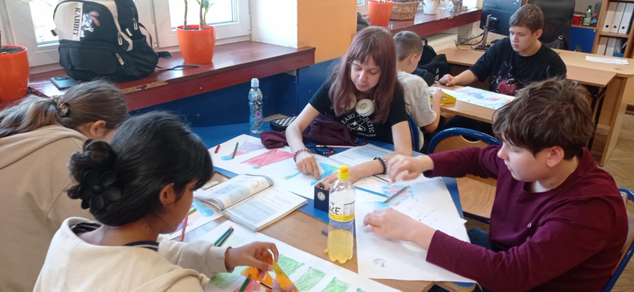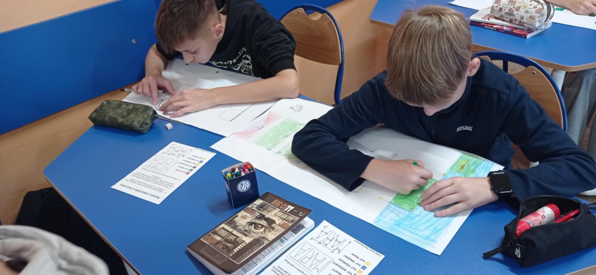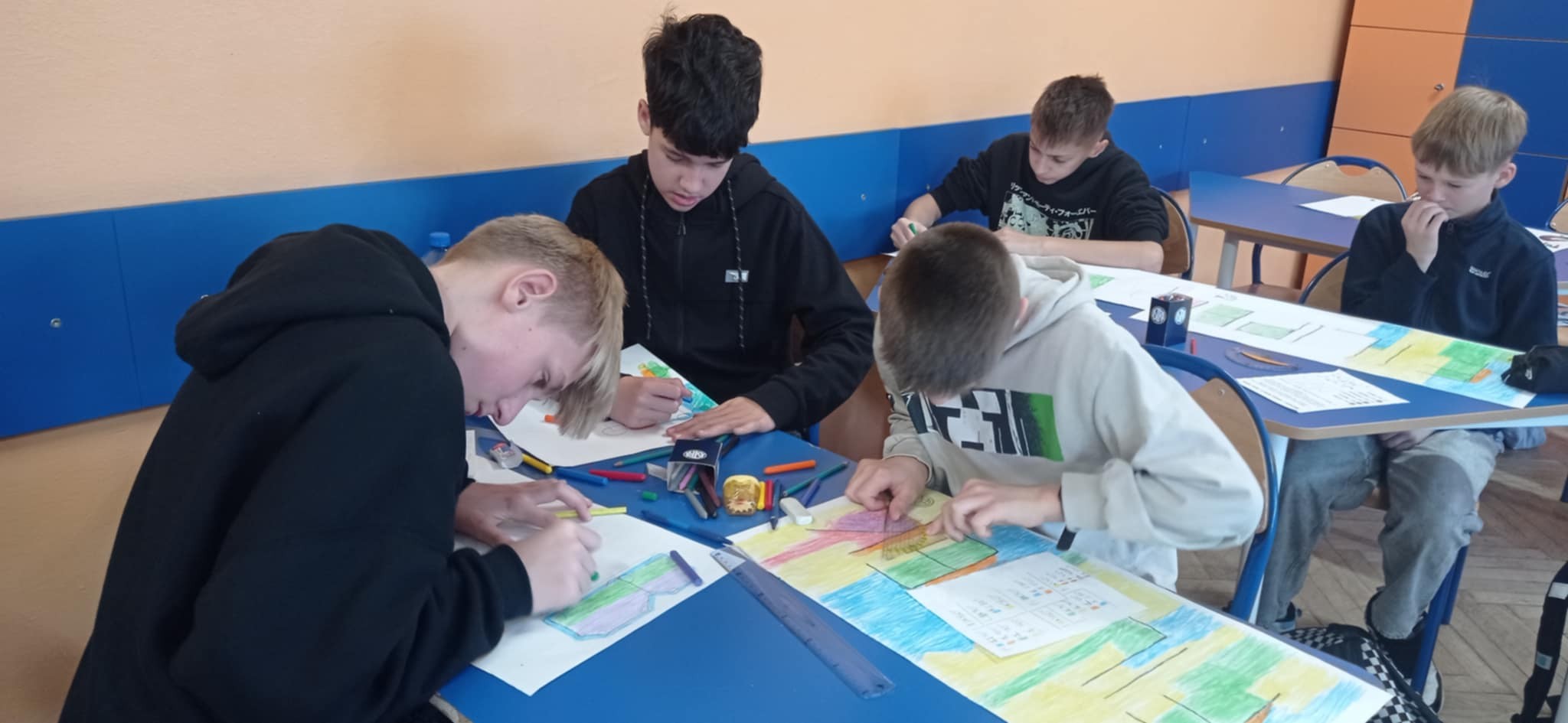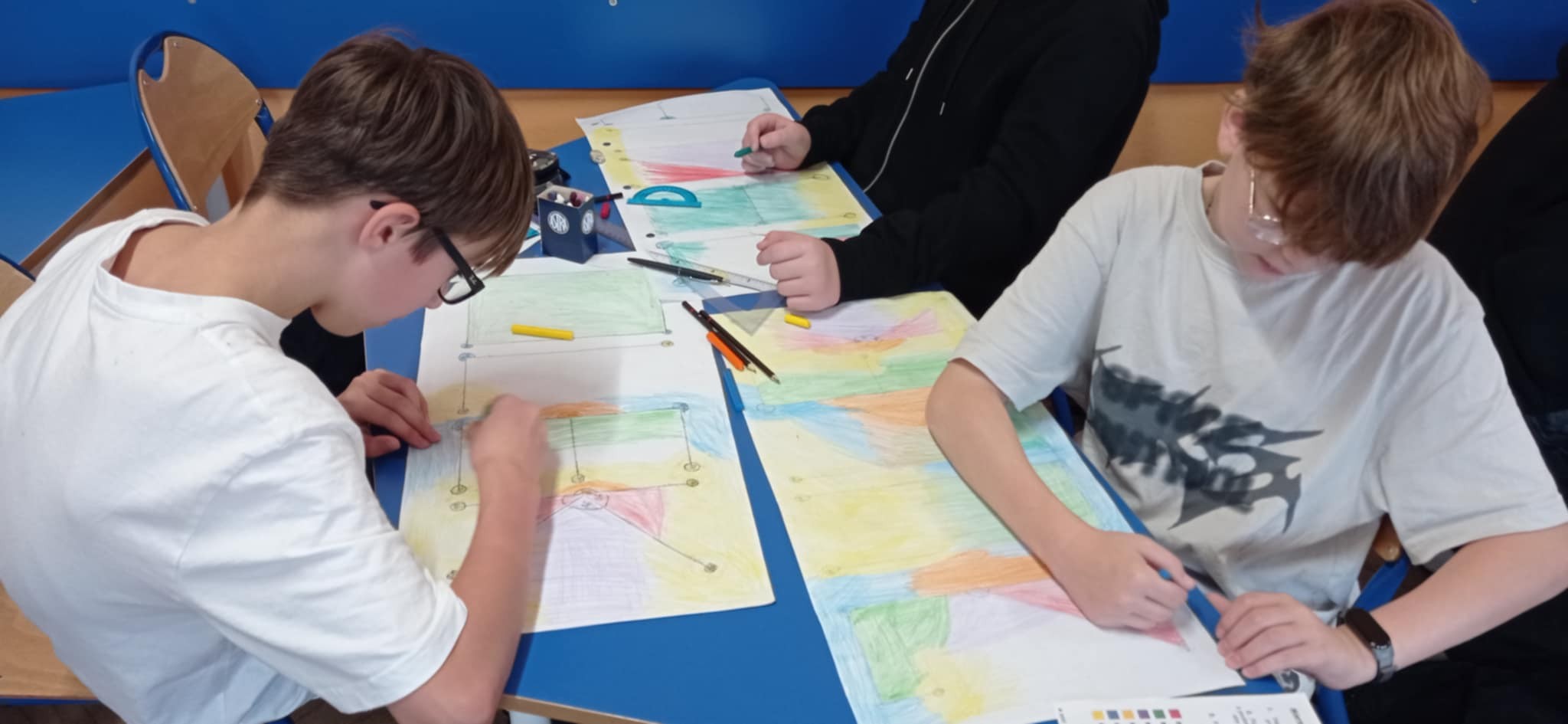 W ramach obchodów Europejskiego Tygodnia Świadomości Dysleksji, podczas lekcji matematyki uczniowie klasy 6a utrwalali rodzaje kątów oraz umiejętność ich mierzenia w nietypowy sposób. Zadaniem uczniów było napisanie swojego imienia za pomocą pisma technicznego, a następnie zgodnie z podanym kluczem pokolorowanie odpowiednich kątów na właściwy kolor. Ostatnim etapem zadania było wykonanie pomiarów wszystkich kątów w imieniu i stworzenie legendy. W trakcie zajęć uczniowie nie tylko utrwalali wiadomości matematyczne, ale również ćwiczyli percepcję wzrokową, koordynację wzrokowo – ruchową, motorykę małą, koncentrację, a także umiejętność czytania ze zrozumieniem.