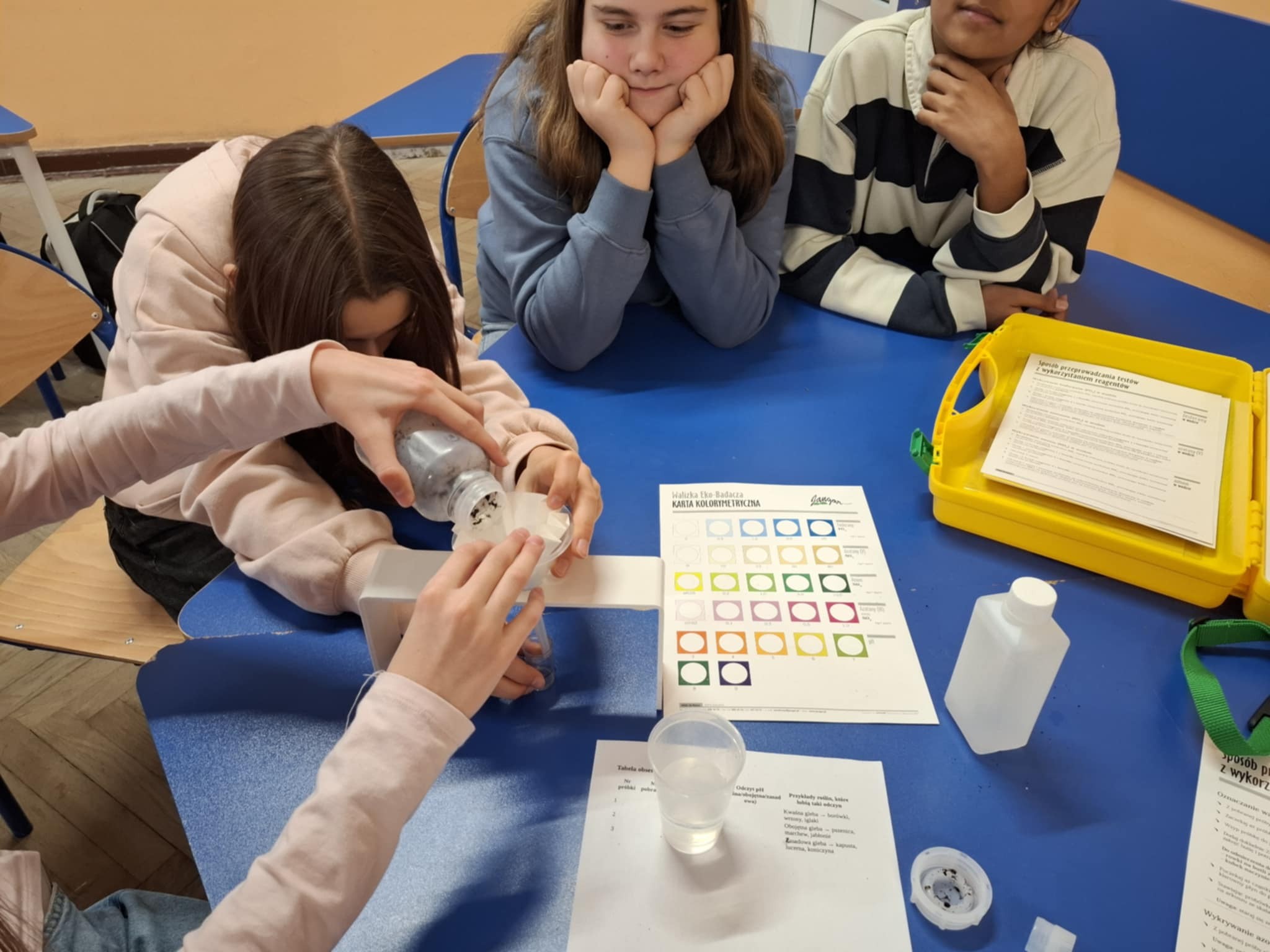 Na ostatnich zajęciach koła geograficznego uczniowie wcielili się w rolę badaczy gleb. Przeprowadzali doświadczenia, dzięki którym mogli poznać właściwości gleby, jej odczyn pH oraz obecność różnych związków chemicznych. Kolejne spotkania również będą poświęcone tej tematyce, ponieważ już 5 grudnia obchodzimy Światowy Dzień Gleby. Z tej okazji członkowie koła przygotują coś wyjątkowego, aby podkreślić znaczenie gleb w naszym środowisku.