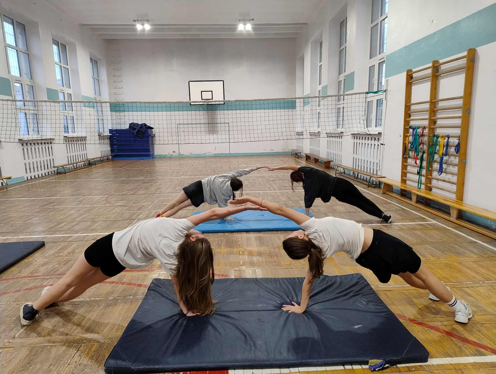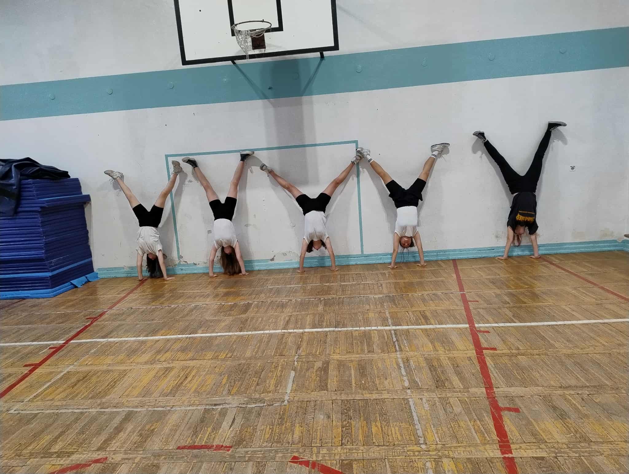Na lekcjach wychowania fizycznego klasy 7 i 8 wykonywały piramidy dwójkowe i ćwiczenia równoważne.