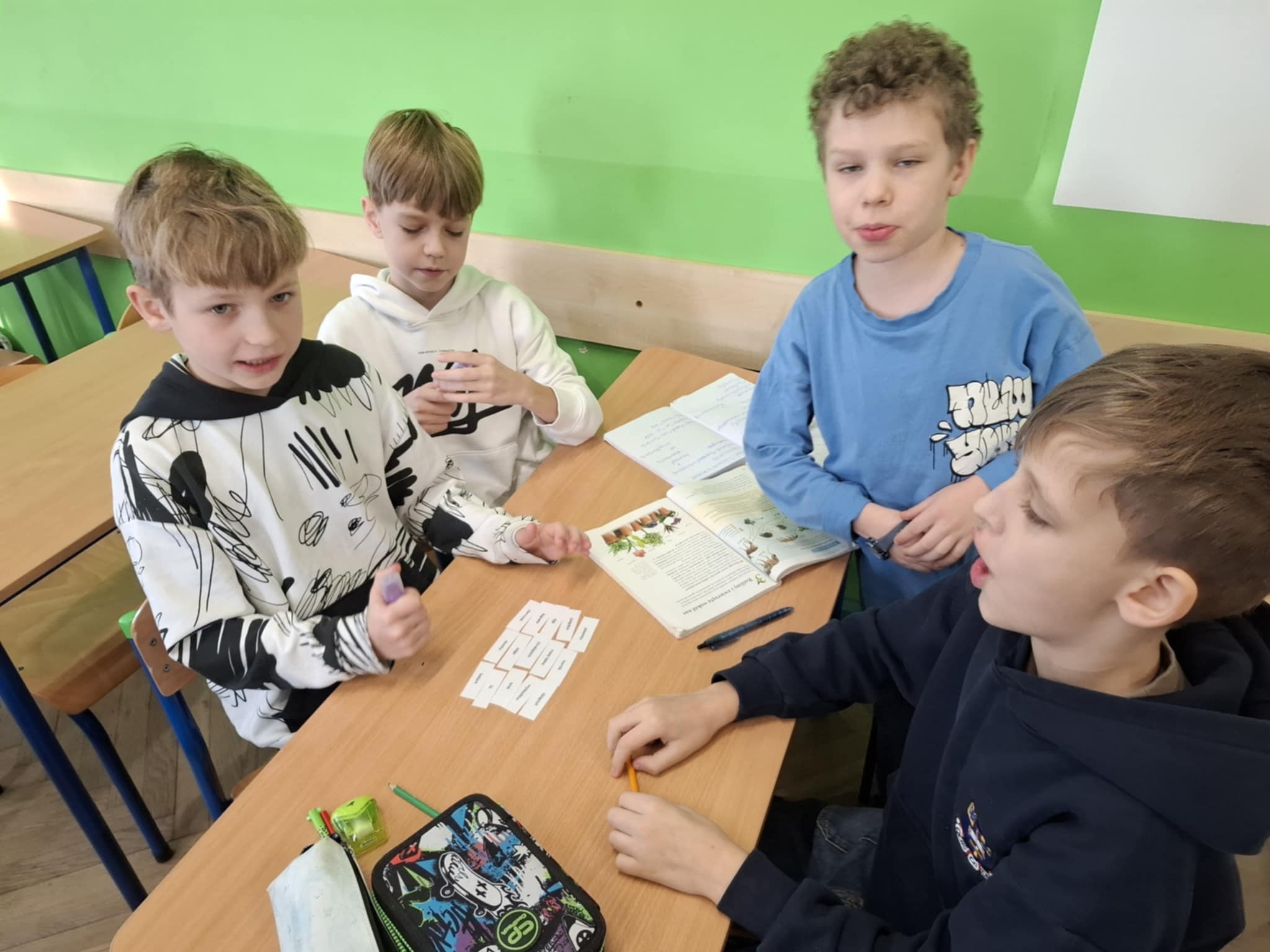 Na ostatnich lekcjach przyrody uczniowie zgłębiali fascynujący świat zależności pokarmowych między organizmami. Wspólnie odkrywali, jak rośliny, zwierzęta i drapieżniki tworzą skomplikowaną sieć powiązań w przyrodzie. Pracując w grupach, układali własne łańcuchy pokarmowe, ucząc się współpracy, logicznego myślenia oraz dostrzegania roli każdego organizmu w ekosystemie.