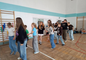 Z okazji Międzynarodowego Dnia Tańca, uczniowie naszej szkoły wspólnie zatańczyli belgijkę podczas dłuższej, piętnastominutowej przerwy. Wydarzenie odbyło się na sali gimnastycznej, gromadząc wielu uczestników i widzów. Dziękujemy wszystkim za zaangażowanie i wspólną zabawę – taniec połączył nas w radosnej atmosferze!