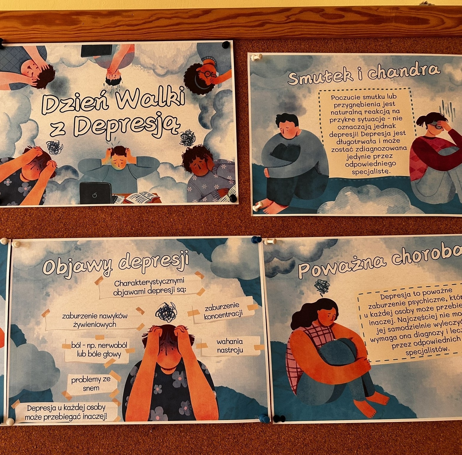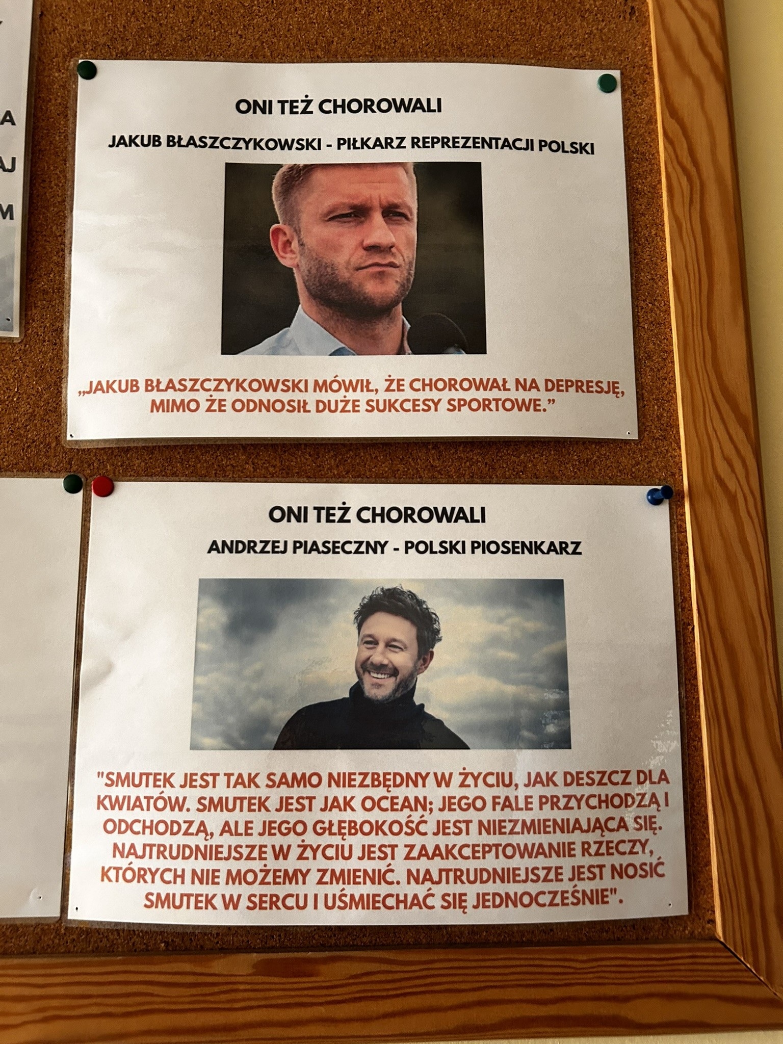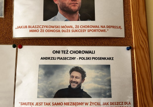 W dniu 23 lutego nasza szkoła włączyła się w obchody Ogólnopolskiego Dnia Walki z Depresją. Uczniowie mogli okazać solidarność z osobami zmagającymi się z depresją poprzez założenie zielonego lub fioletowego elementu garderoby – kolorów symbolizujących wsparcie i nadzieję dla osób chorujących na to zaburzenie. Przy gabinecie psychologa pojawiła się gazetka edukacyjna dotycząca depresji – czym się charakteryzuje, jakie są jej objawy, gdzie można szukać pomocy oraz w jaki sposób radzić sobie z obniżonym nastrojem i trudnymi emocjami. W holu szkoły przygotowano również wystawę pt. „Znani z depresją”. Uczniowie mogli zapoznać się z historiami i cytatami osób publicznych, które otwarcie mówiły o swoich doświadczeniach z tą chorobą, m.in. J. K. Rowling, Adele, Jakub Błaszczykowski oraz innych znanych osób ze świata kultury, sportu i sztuki. Celem wystawy było zwrócenie uwagi na problem depresji oraz pokazanie, że choroba ta może dotknąć każdego, niezależnie od wieku, zawodu czy osiągnięć.