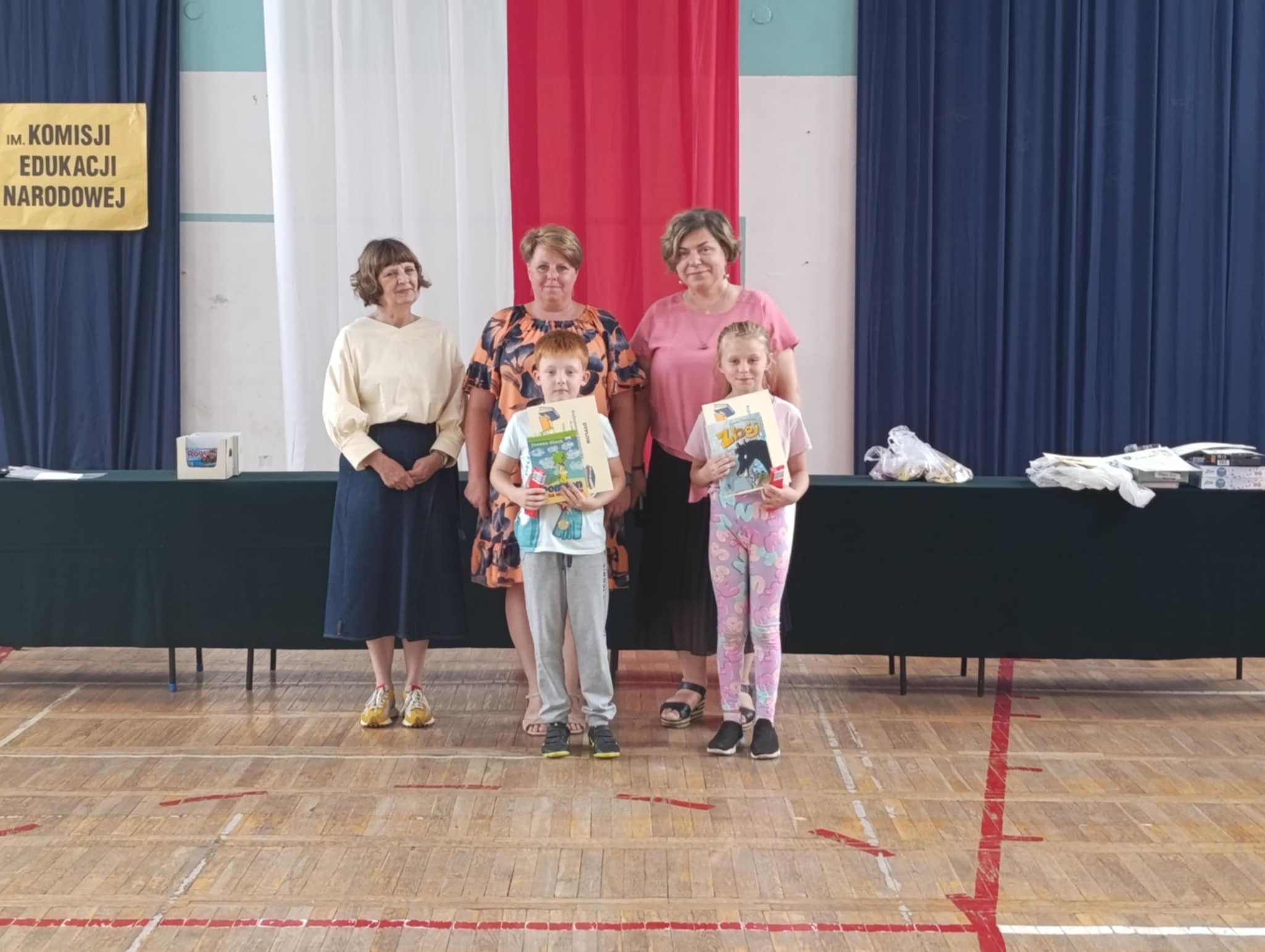 Uczniowie klas 1-3 otrzymali nagrody i dyplomy w konkursach klasowych, szkolnych i międzyszkolnych. Między innymi nagrody w konkursie czytania "Pięknie czytam"; konkursie plastycznym "Bezpieczne wakacje"; konkursie na najwięcej wypożyczonych książek z biblioteki. Medale i puchary za "Biegi przełajowe o puchar dyrektora szkoły" . Za konkursy religijne i świetlicowe. Wszystkim nagrodzonym gratulujemy !