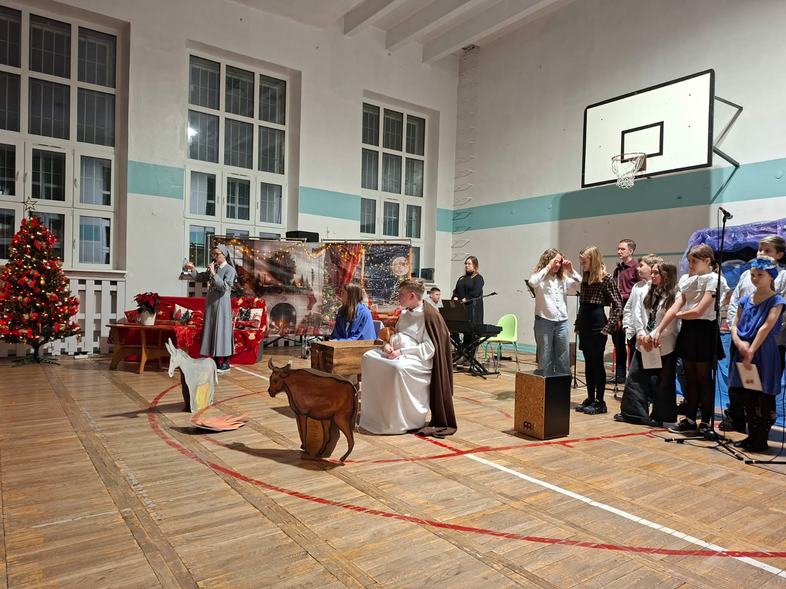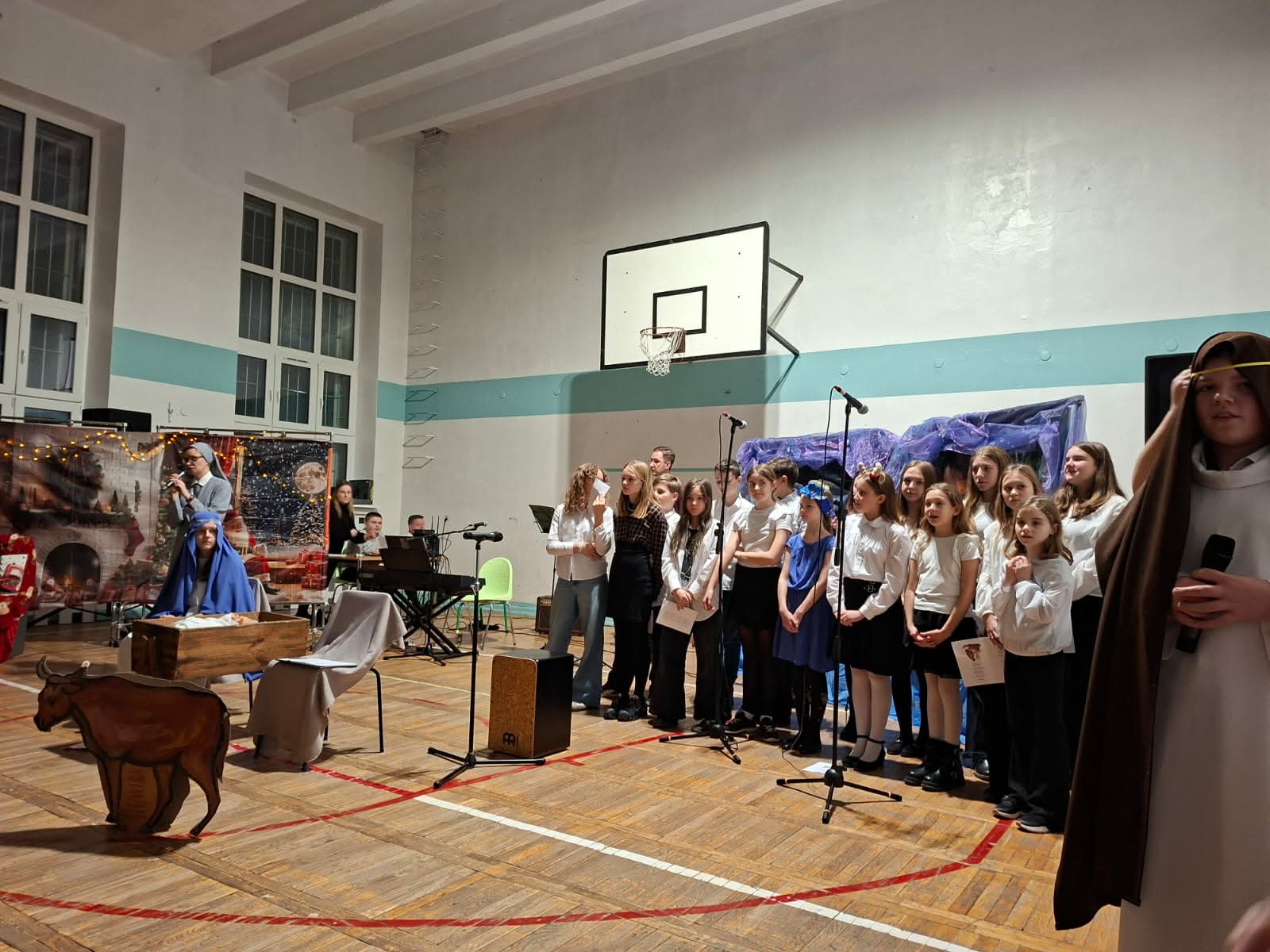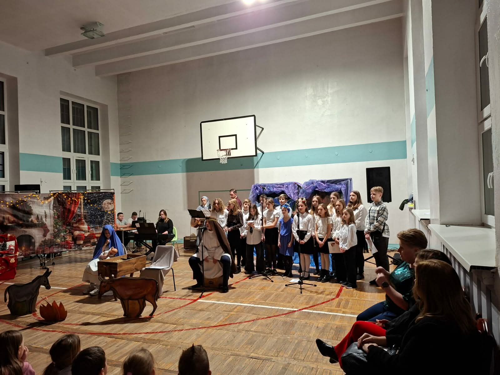 W wyjątkowej, świątecznej atmosferze odbyło się w naszej szkole wydarzenie Rodzinne Kolędowanie, które zgromadziło uczniów, rodziców, rodzeństwo oraz nauczycieli. Wspólne śpiewanie kolęd i pastorałek stało się piękną okazją do integracji całej społeczności szkolnej oraz pielęgnowania bożonarodzeniowych tradycji. Nie zabrakło wzruszeń, uśmiechów i radości płynącej ze wspólnie spędzonego czasu. Rodzinne kolędowanie pokazało, jak ważne są spotkania, które budują relacje, wzmacniają poczucie wspólnoty i wprowadzają wszystkich w klimat świąt. Dziękujemy wszystkim, którzy zaangażowali się w organizację wydarzenia oraz tym, którzy zechcieli być z nami w tym wyjątkowym dniu. To dzięki Wam szkoła jest miejscem pełnym ciepła, życzliwości i wspólnych wartości.