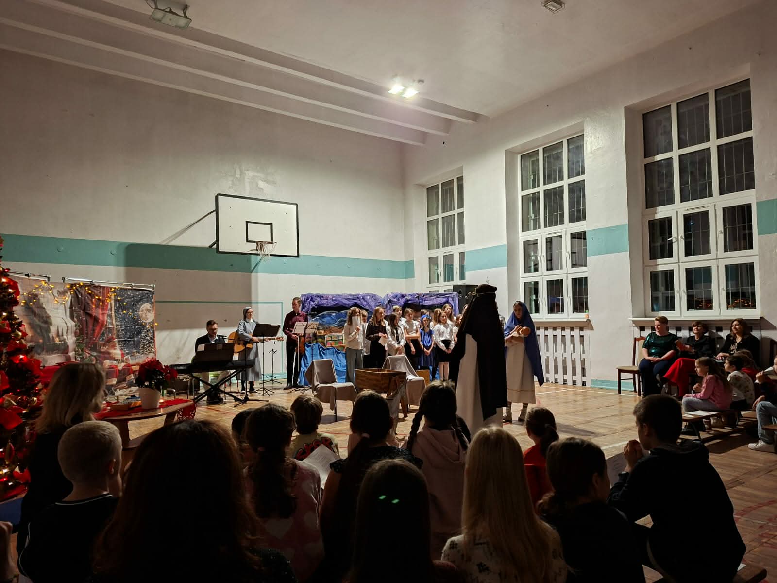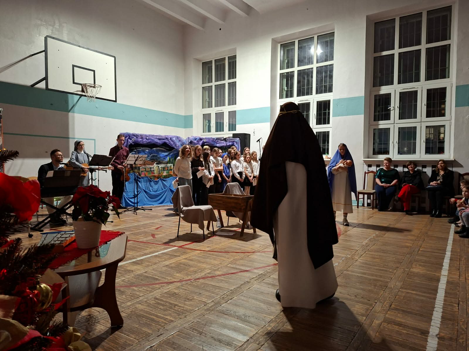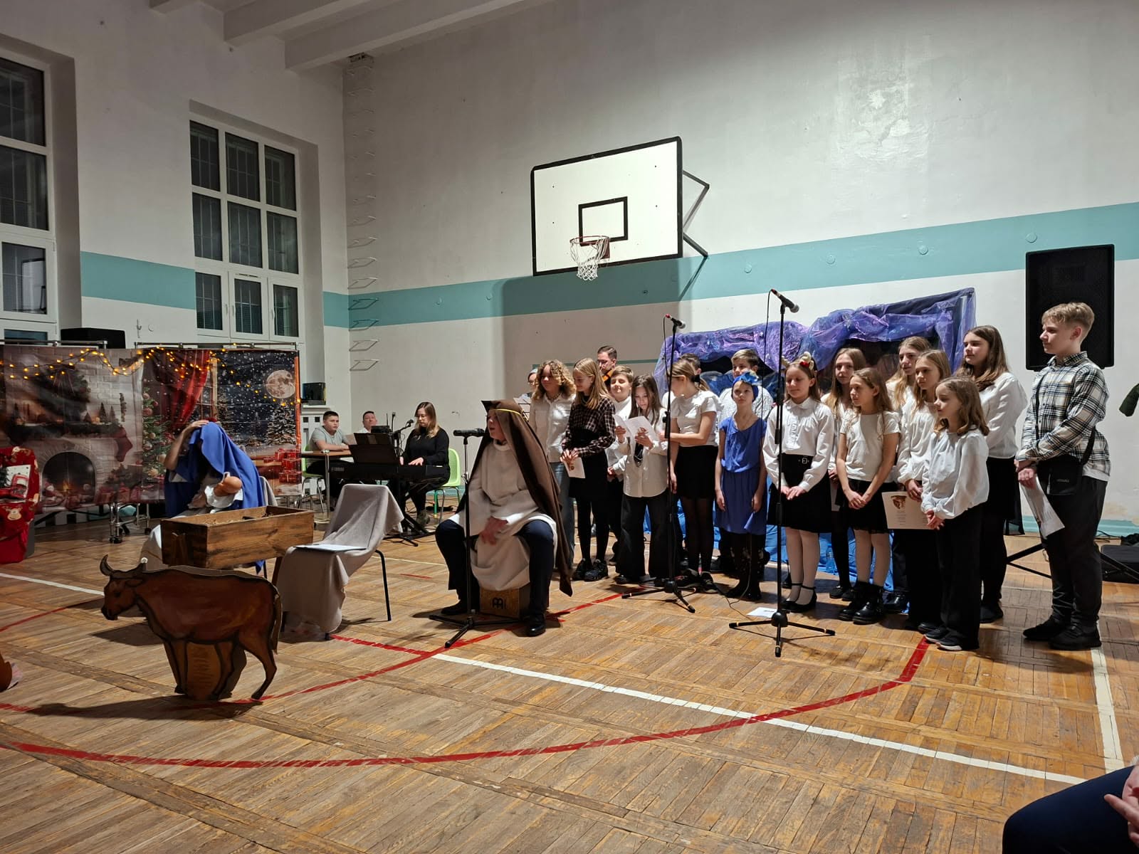 W wyjątkowej, świątecznej atmosferze odbyło się w naszej szkole wydarzenie Rodzinne Kolędowanie, które zgromadziło uczniów, rodziców, rodzeństwo oraz nauczycieli. Wspólne śpiewanie kolęd i pastorałek stało się piękną okazją do integracji całej społeczności szkolnej oraz pielęgnowania bożonarodzeniowych tradycji. Nie zabrakło wzruszeń, uśmiechów i radości płynącej ze wspólnie spędzonego czasu. Rodzinne kolędowanie pokazało, jak ważne są spotkania, które budują relacje, wzmacniają poczucie wspólnoty i wprowadzają wszystkich w klimat świąt. Dziękujemy wszystkim, którzy zaangażowali się w organizację wydarzenia oraz tym, którzy zechcieli być z nami w tym wyjątkowym dniu. To dzięki Wam szkoła jest miejscem pełnym ciepła, życzliwości i wspólnych wartości.